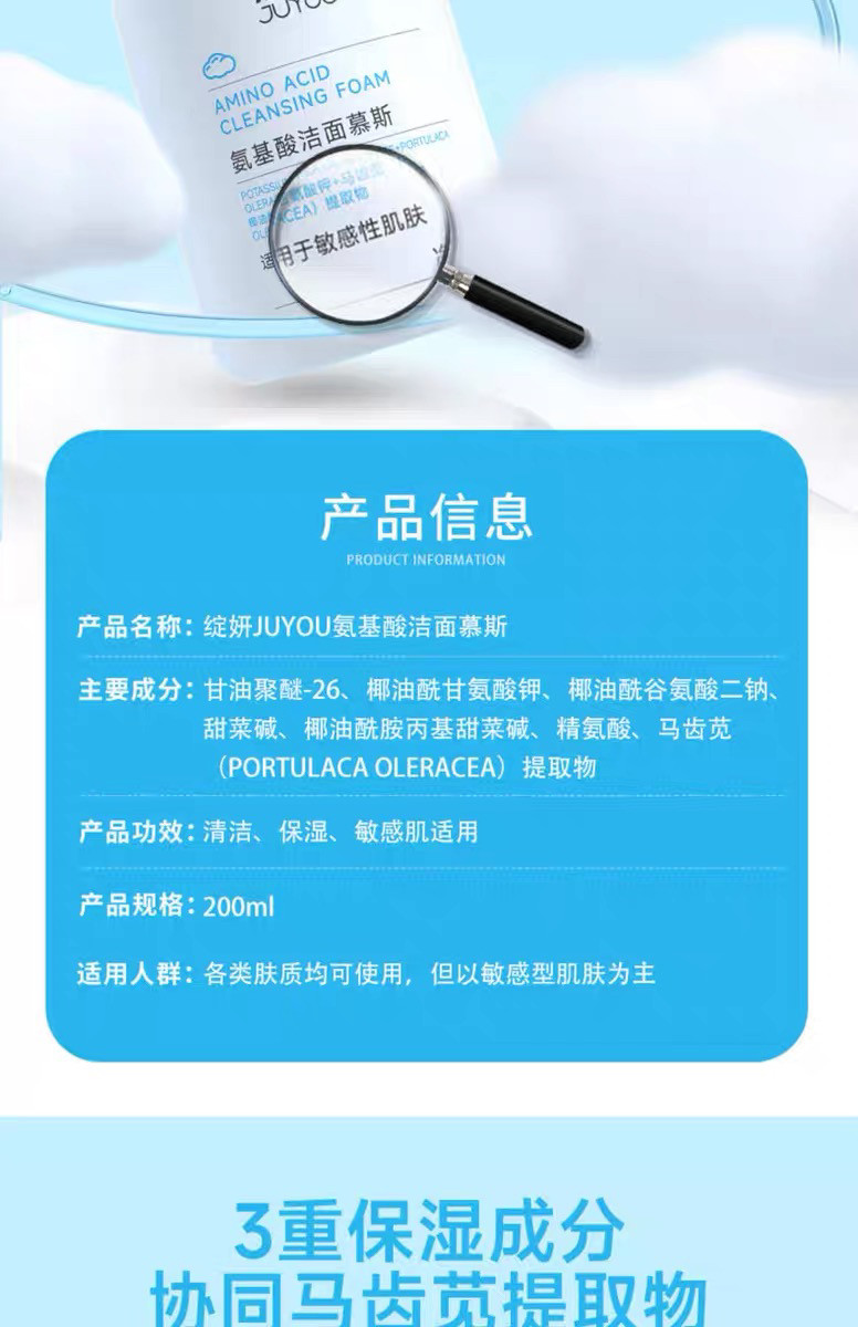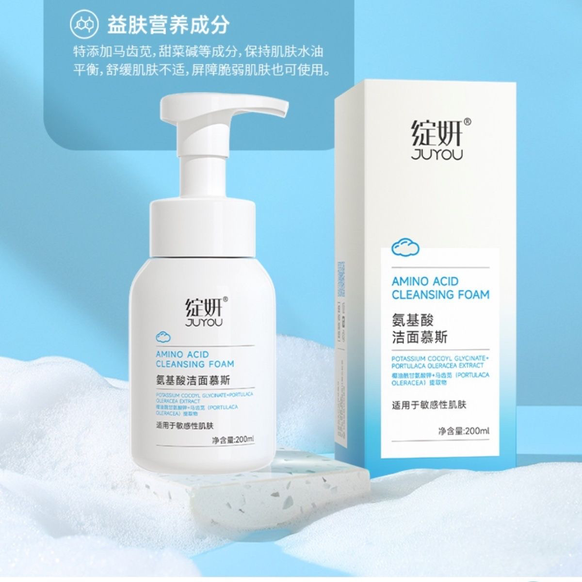 📚 绽妍氨基酸泡沫洁面慕斯200ML 温和清洁保湿舒缓敏肌安心