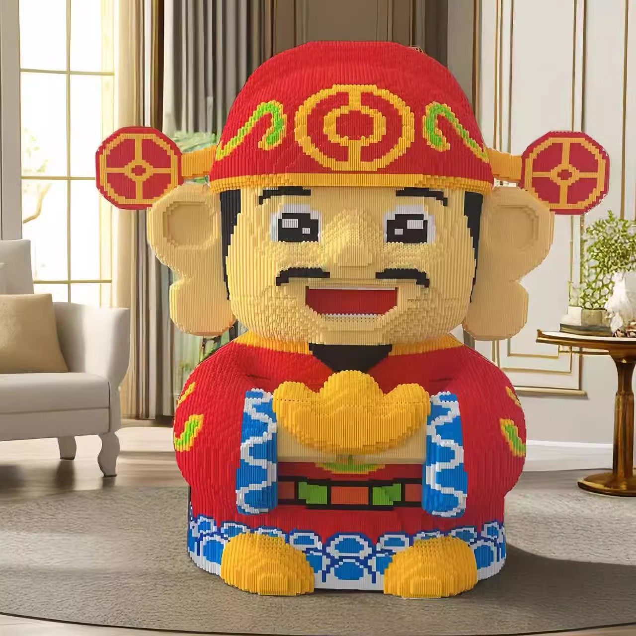 📚 2025年新款超大号财神爷国潮积木儿童益智玩具拼图开业礼物摆件