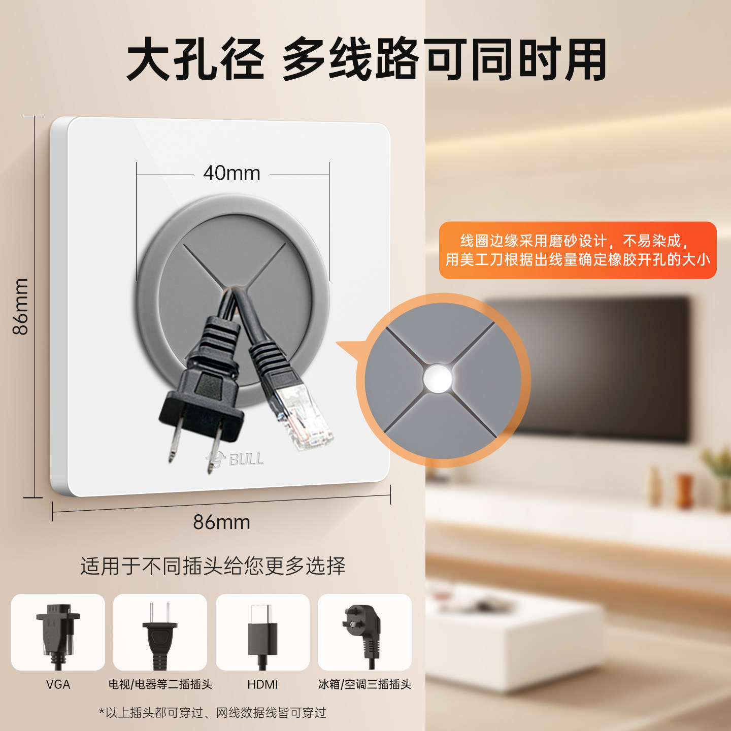 📚 公牛86型插座面板遮挡盖白盖板空白带出线孔穿线开关装饰堵洞穿孔
