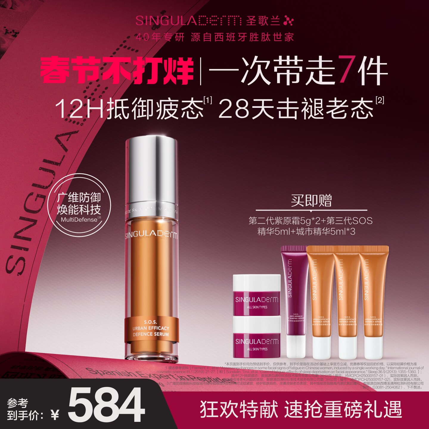 📚 SINGULADERM/圣歌兰城市精华淡纹抗皱紧致修护透亮胜肽防御精华液