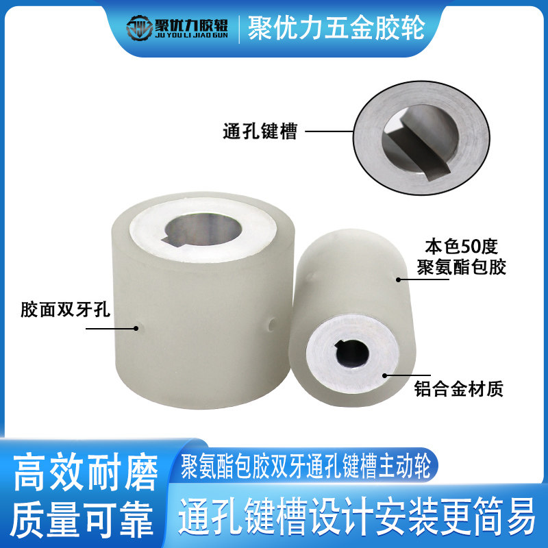 #双牙通孔带键槽型聚氨酯包胶主动轮流水线输送导向PU耐磨动力滚筒 #小红书种草笔记 #五金配件 #高性能 #高耐用性