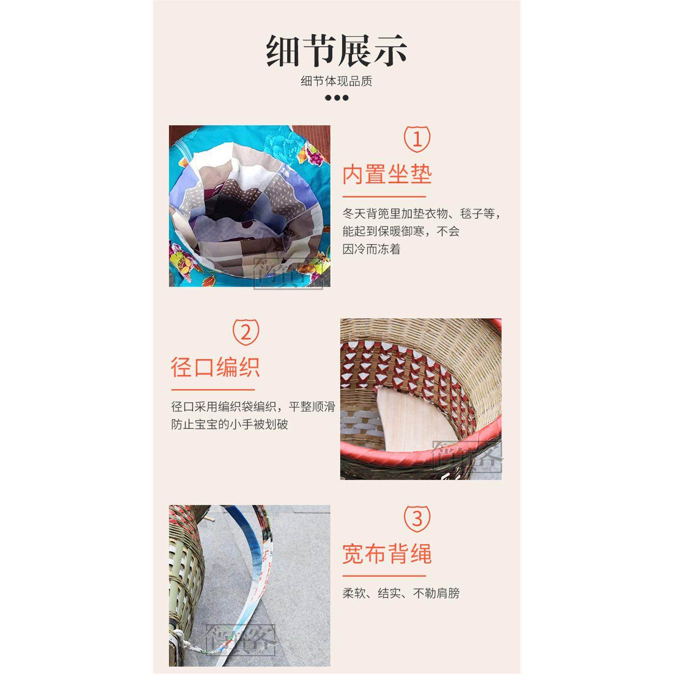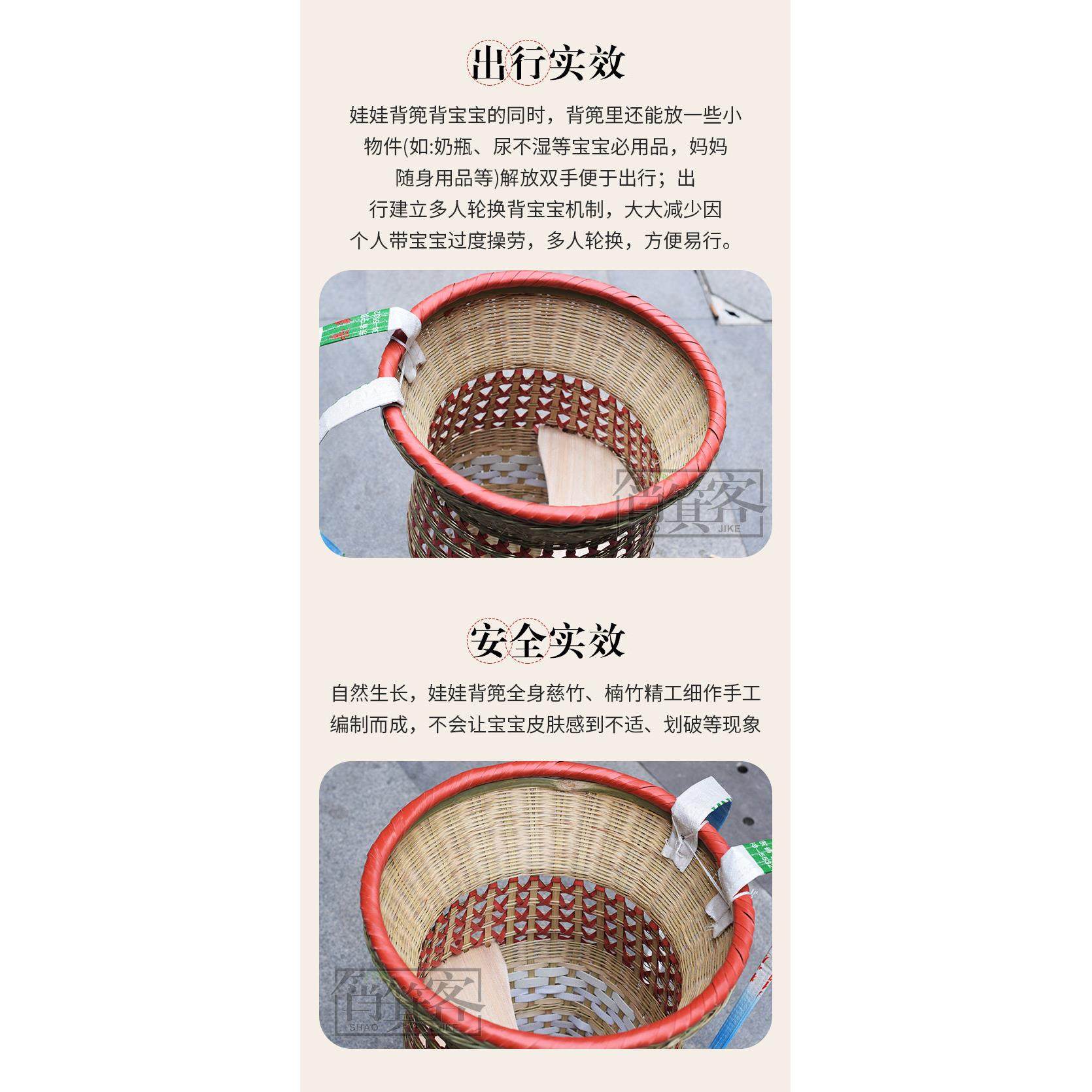 📚 竹编婴儿背篼宝宝背篓竹背筐大号竹背篼手工竹编背篼娃娃背竹制品