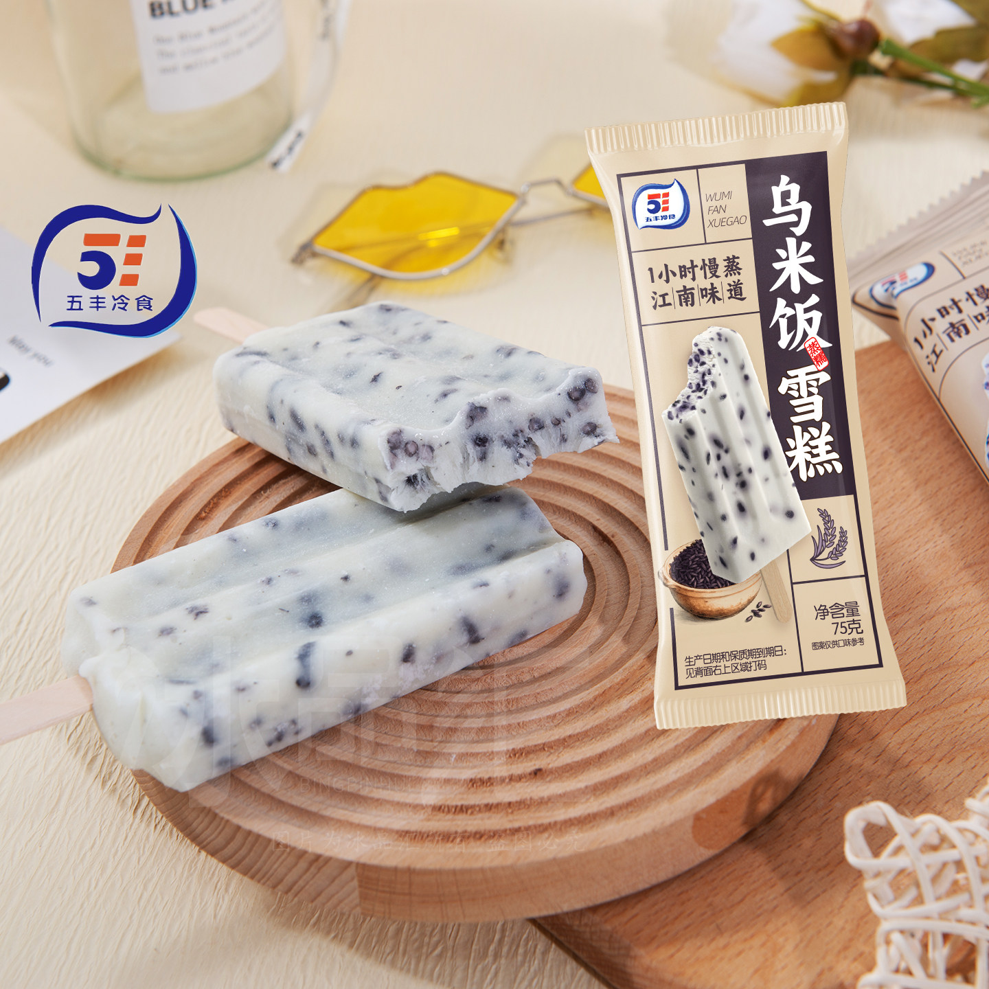 📚 3支-乌米饭雪糕五丰冰淇淋冰棒1小时慢蒸大米饭冰棍粗粮糯米冷饮
