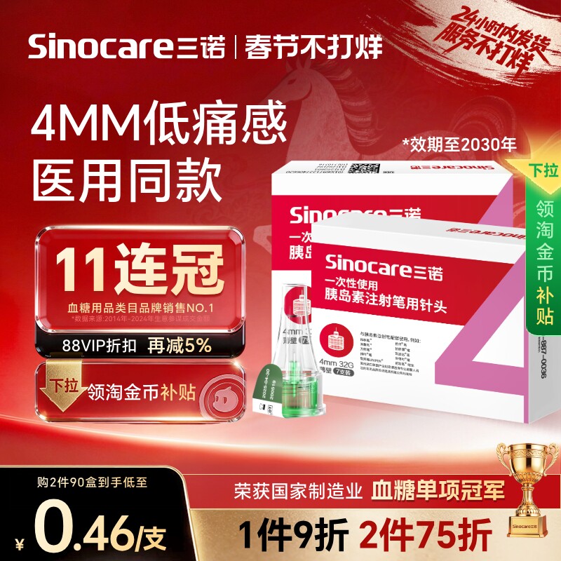 💥种草!三诺胰岛素针头注射笔针头一次性4mm5mm通用诺和笔打司美格鲁肽,券后价7.8超值体验!💎
