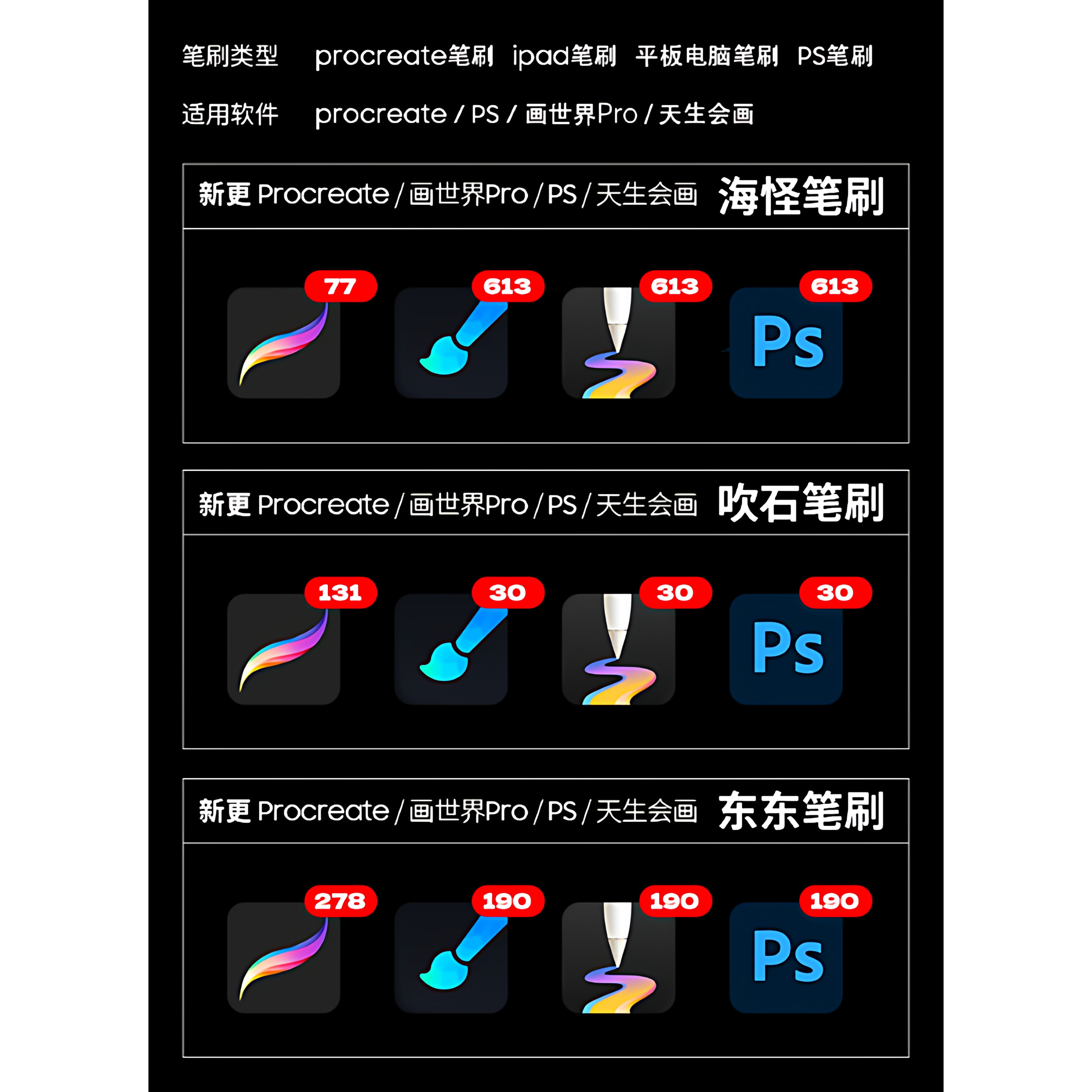 📚 海怪吹石东东procreate笔刷 ps画世界pro天生会画 勾线人像二次元