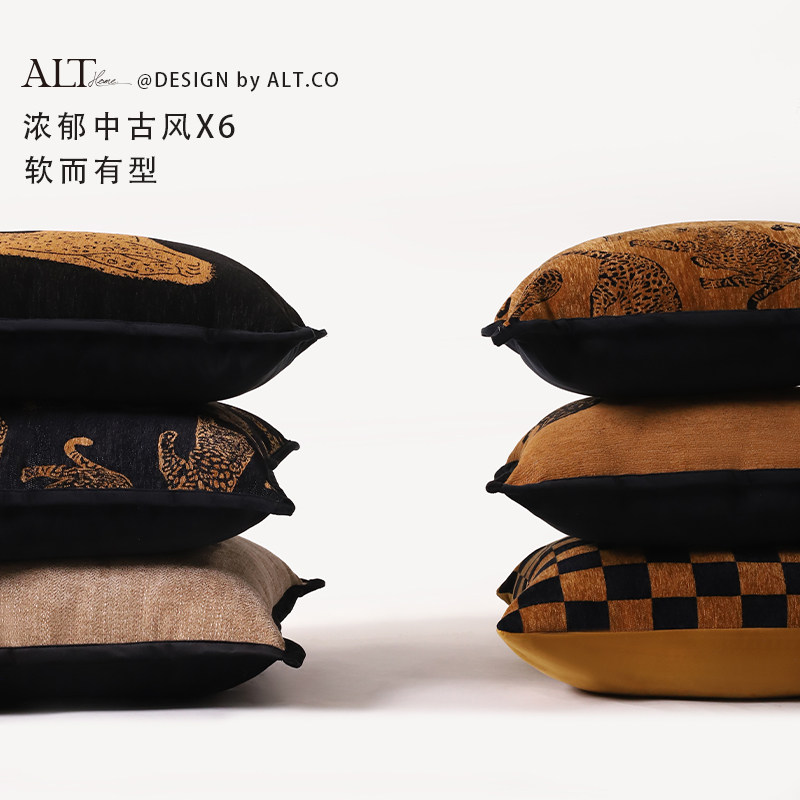 📚 中古风沙发抱枕套不含芯客厅轻奢高级感金豹靠枕床上方形靠垫靠背