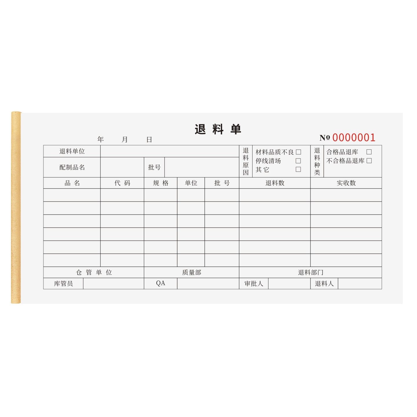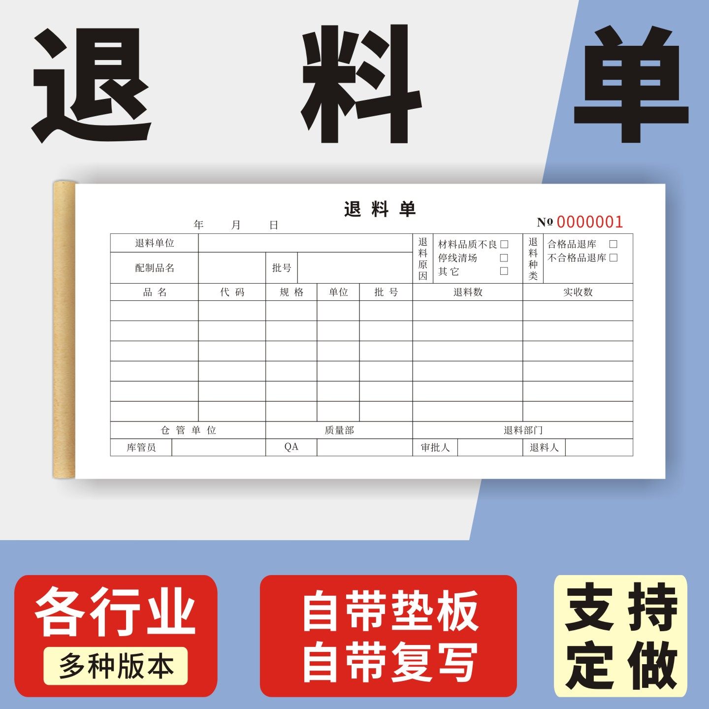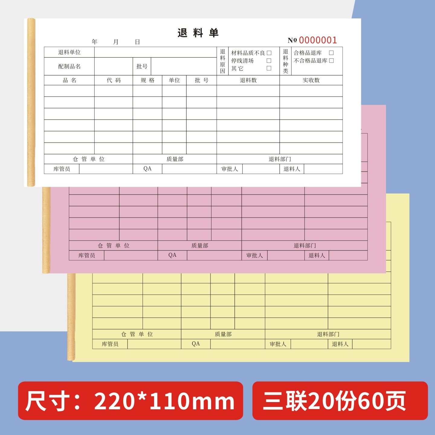 📚 退料单定制订做两联三联无碳复写通用版生产补料单退货申请单车间生产领料发料领用单仓库货物次品退回记录表