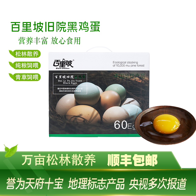 📚 万源百里坡旧院黑鸡散养农家新鲜土鸡蛋60枚农村土特产礼盒
