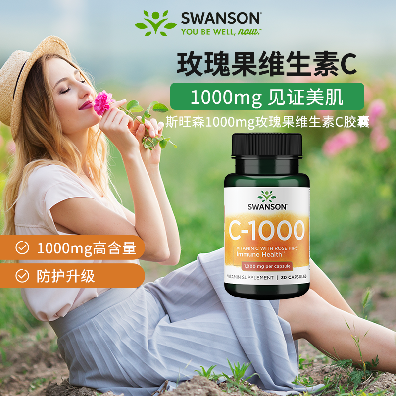 📚 美国Swanson斯旺森玫瑰果维生素C胶囊1000mg提升成人自护力VC正品