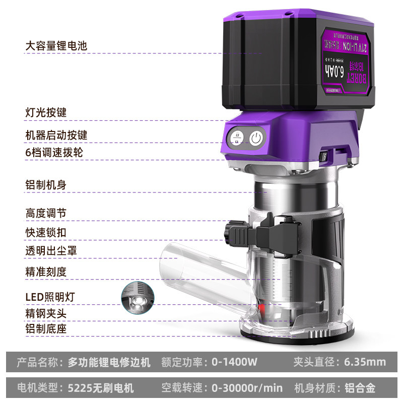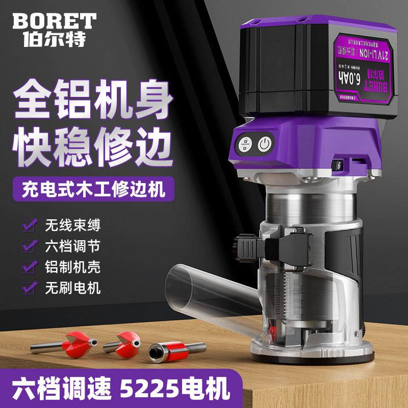 📚 伯尔特无刷锂电修边机木工家用充电式开槽机电动修边开孔雕刻机