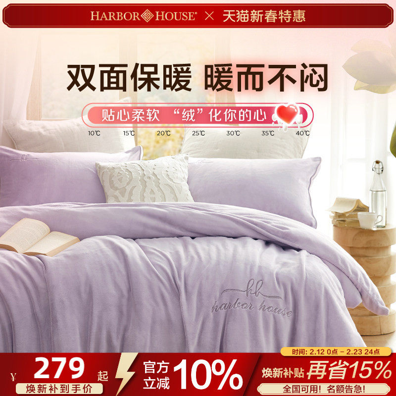 📚 Harbor House牛奶绒四件套珊瑚绒床笠法兰绒被套加绒加厚家居床品