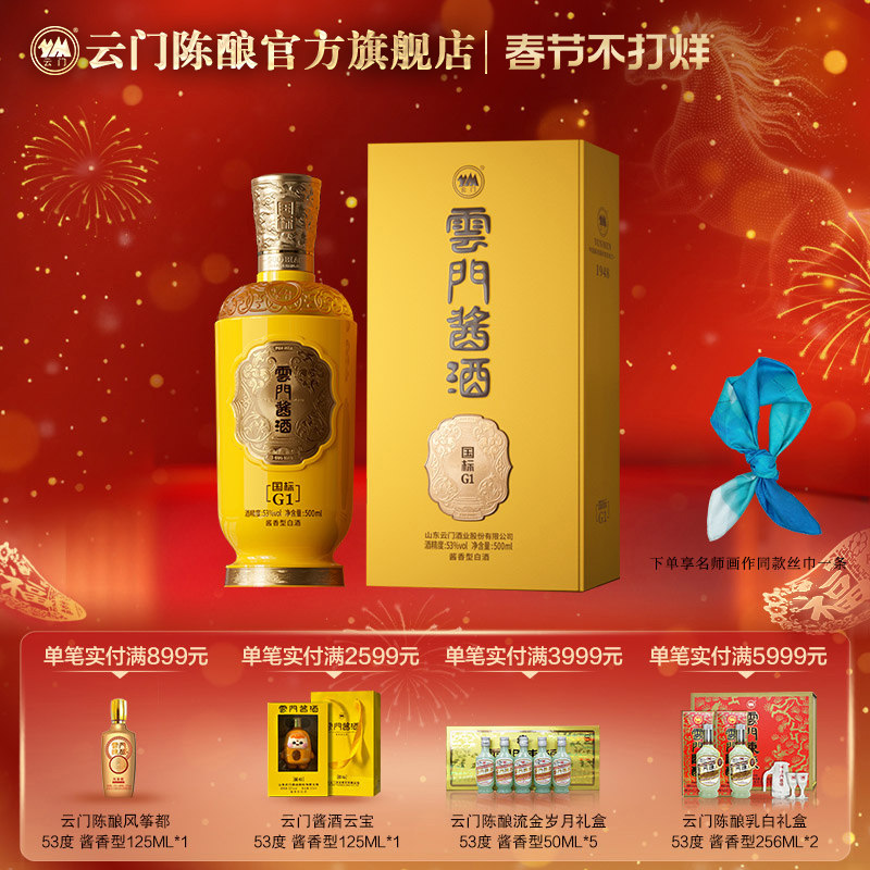 📚 【云门酱酒】国标70G1桑火尧定制酒酱香型白酒53度500ml单瓶装