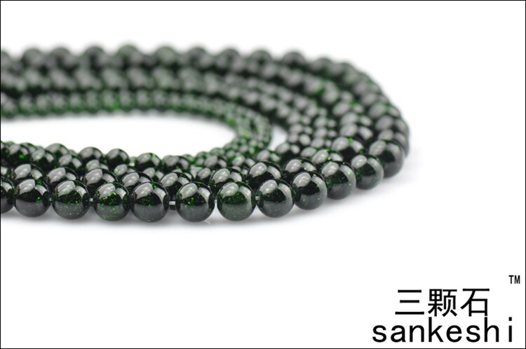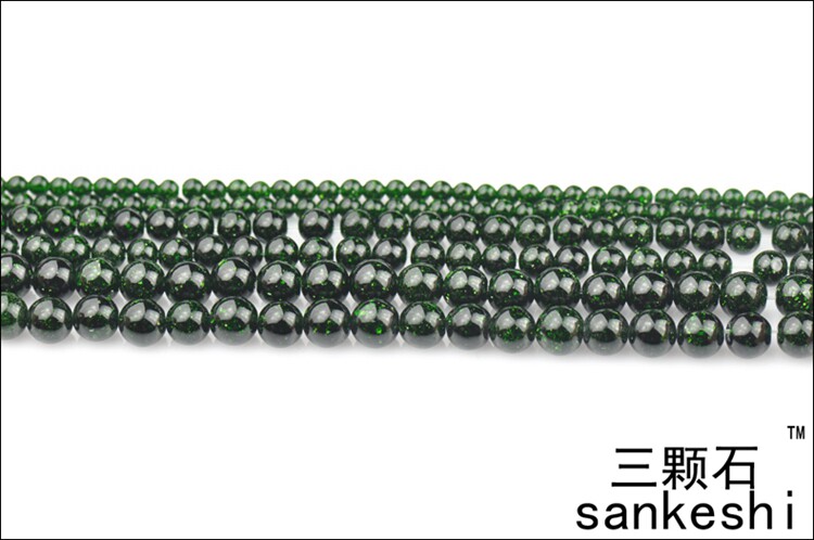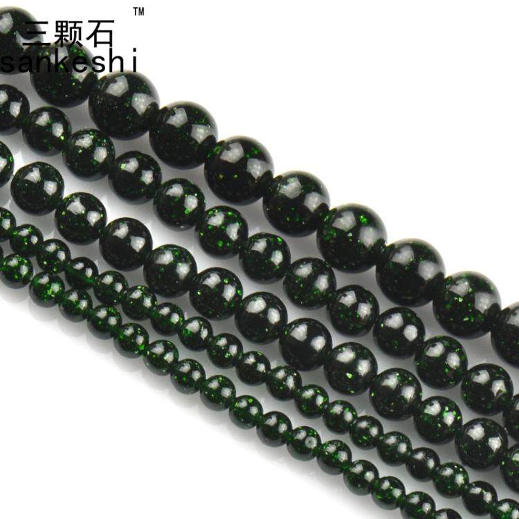 📚 三颗石 绿砂石 绿沙石圆珠半成品 DIY 手工水晶饰品配件 串珠