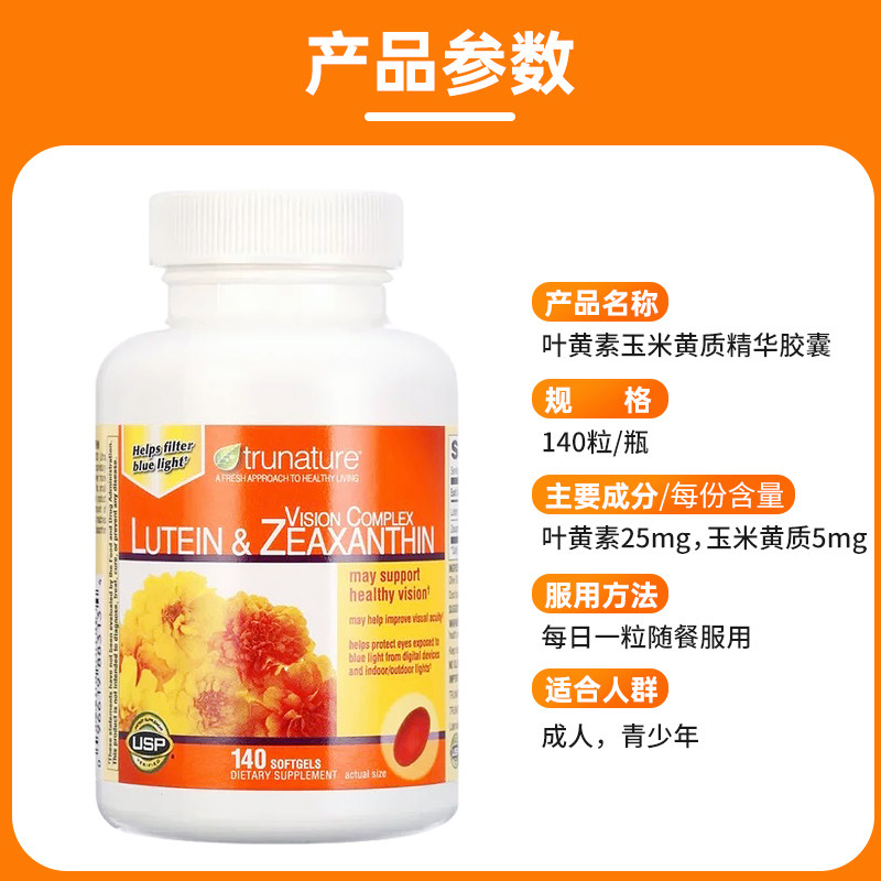 📚 美国进口TruNature纯天然叶黄素胶囊成人青少年护眼片专利护眼丸
