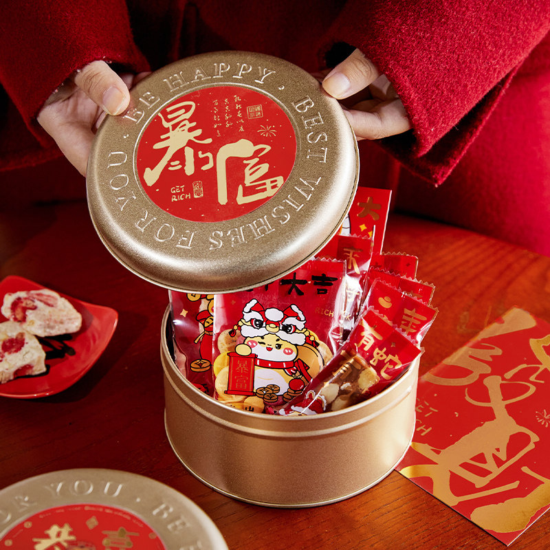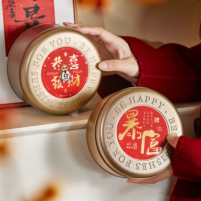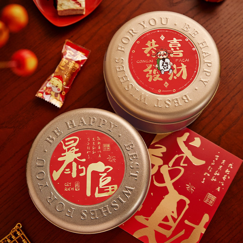 📚 2026新年曲奇饼干牛轧酥可可脆雪花酥太妃糖果包装盒圆形金铁罐盒