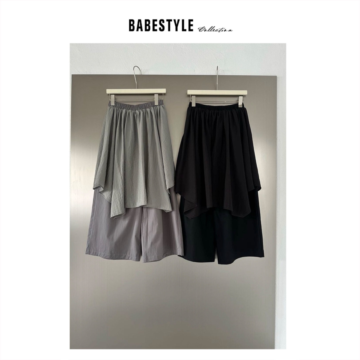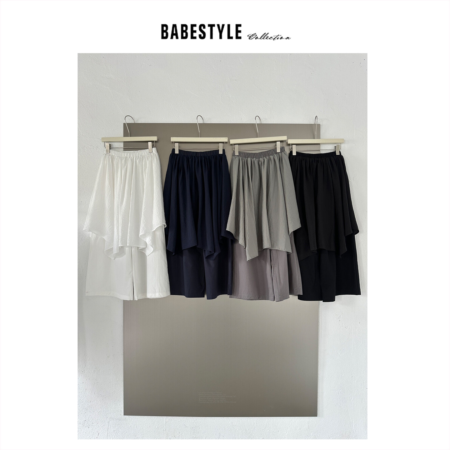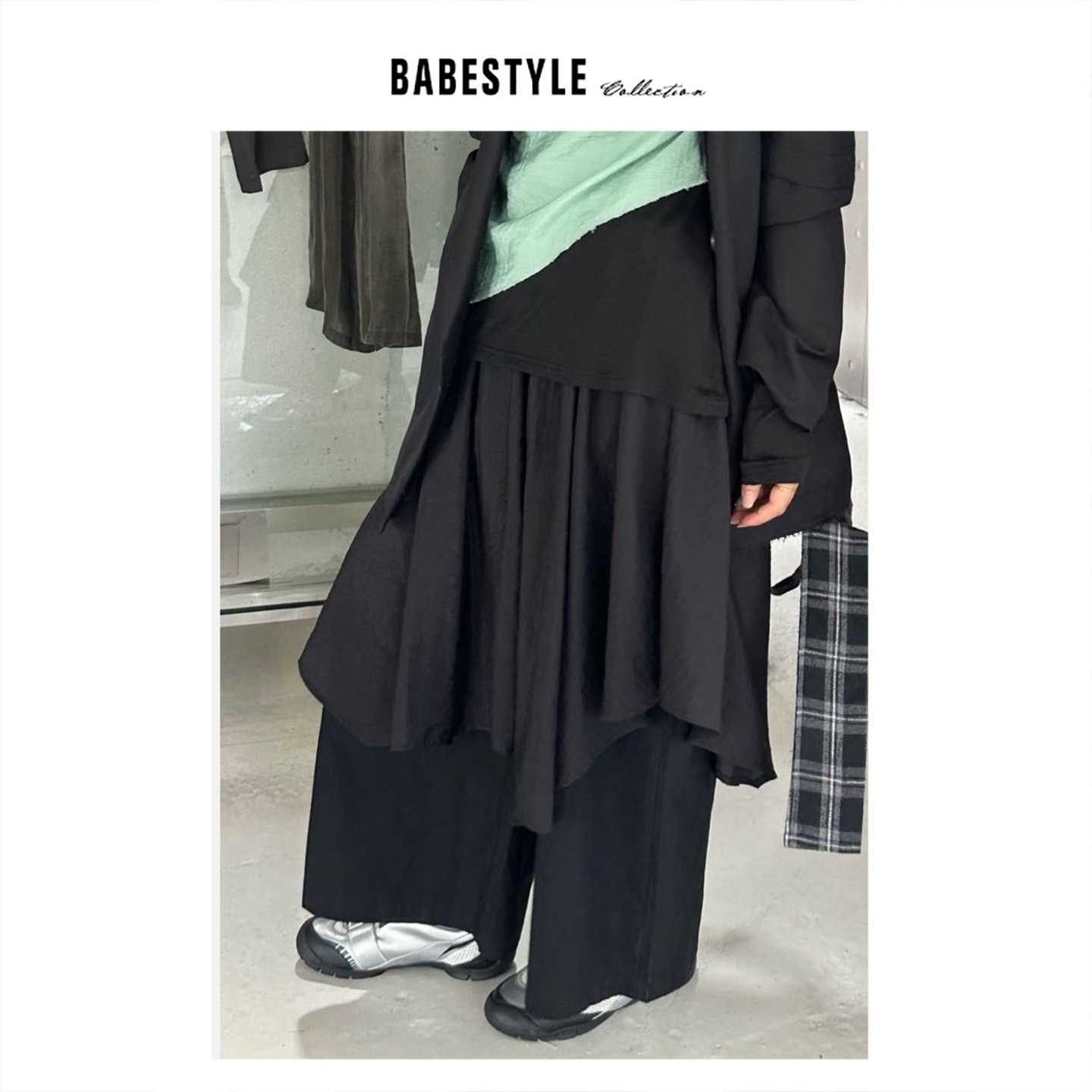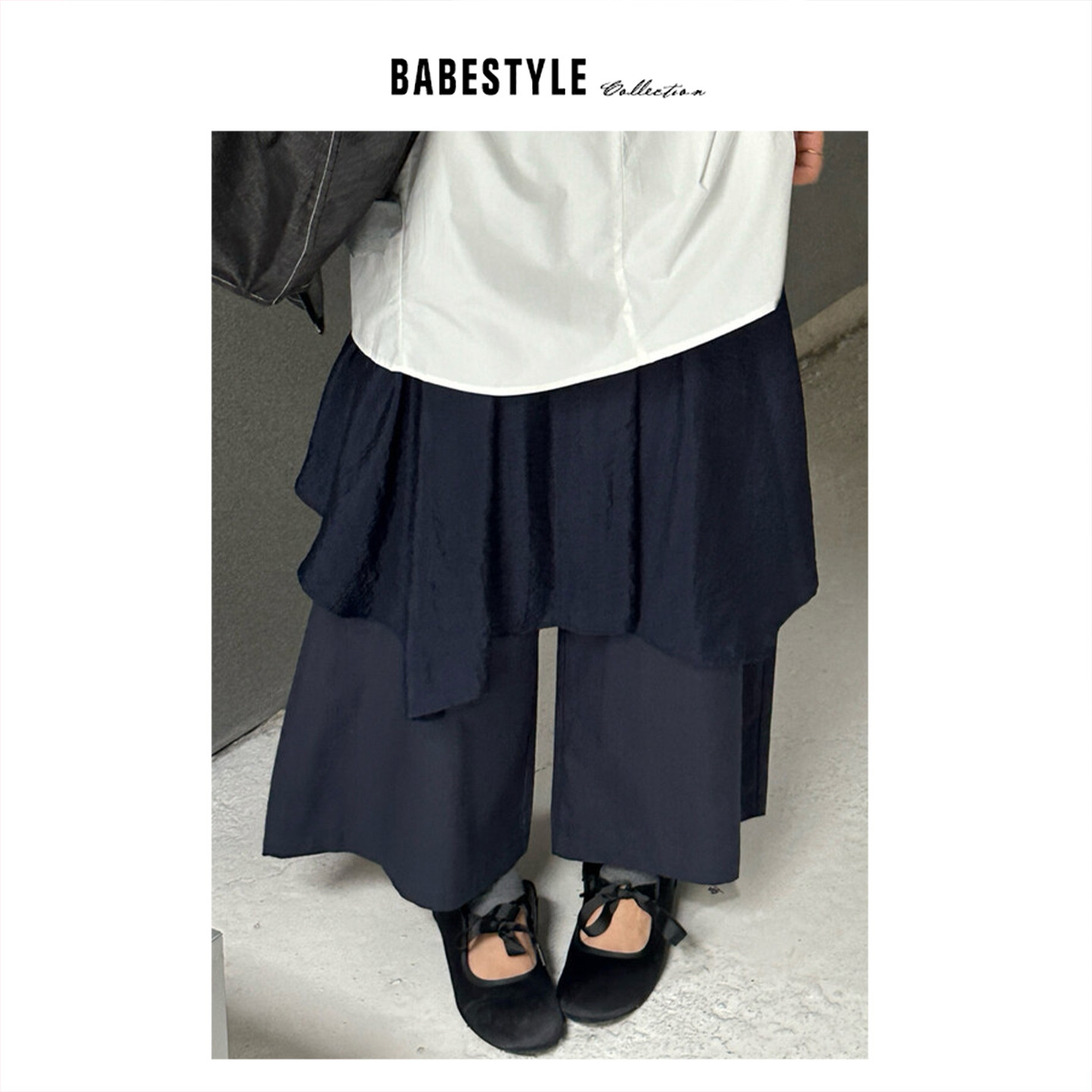 📚 BABESTYLE |“设计系学姐”首尔气质通勤不规则裙摆假两件休闲裤