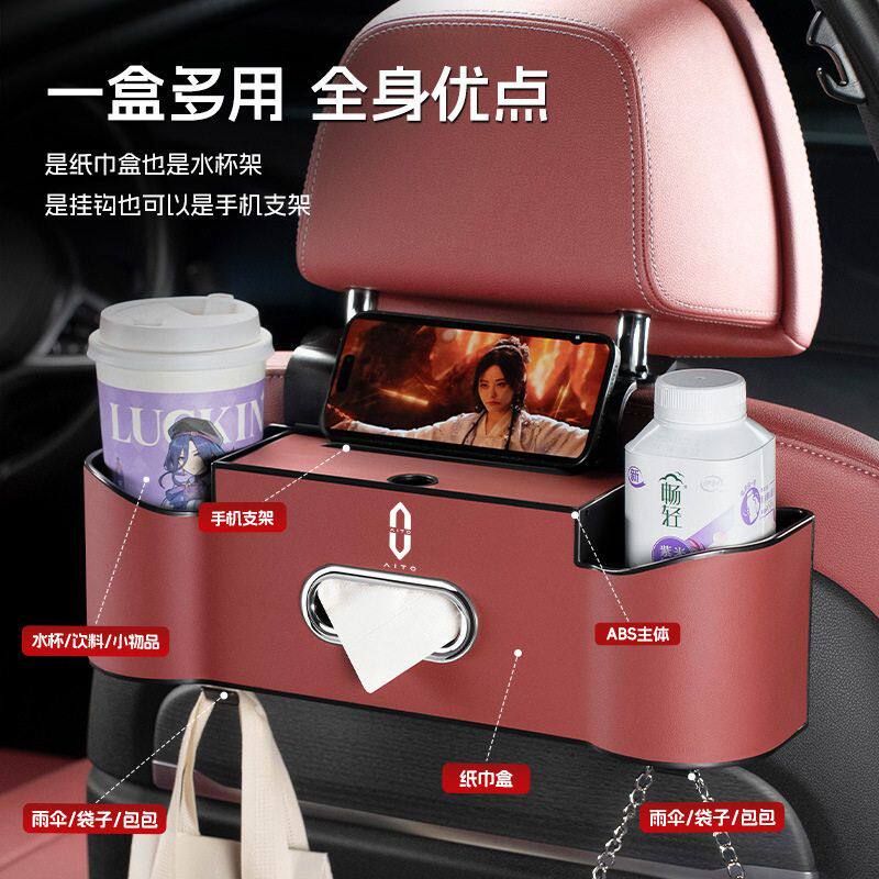 📚 适用问界华为椅背收纳盒M9/M7/M5汽车座椅后背置物盒纸巾盒水杯架
