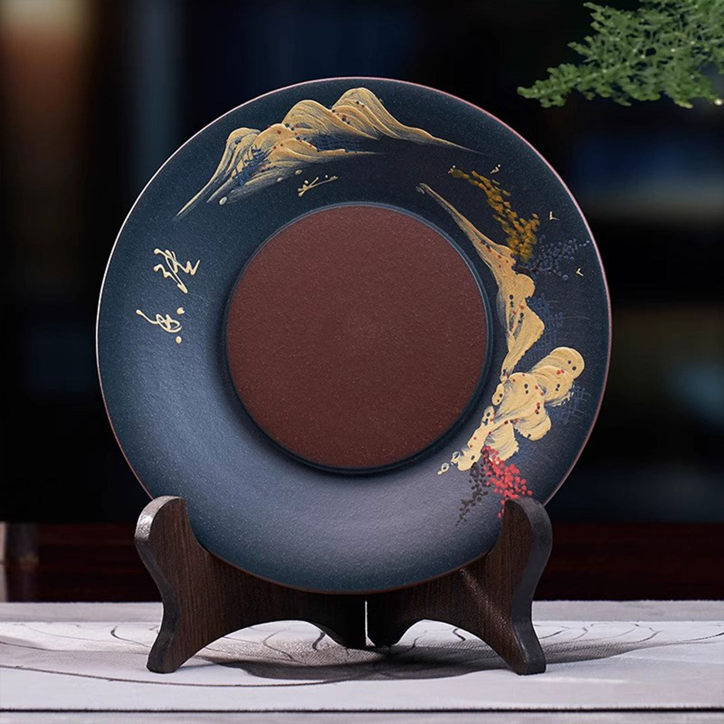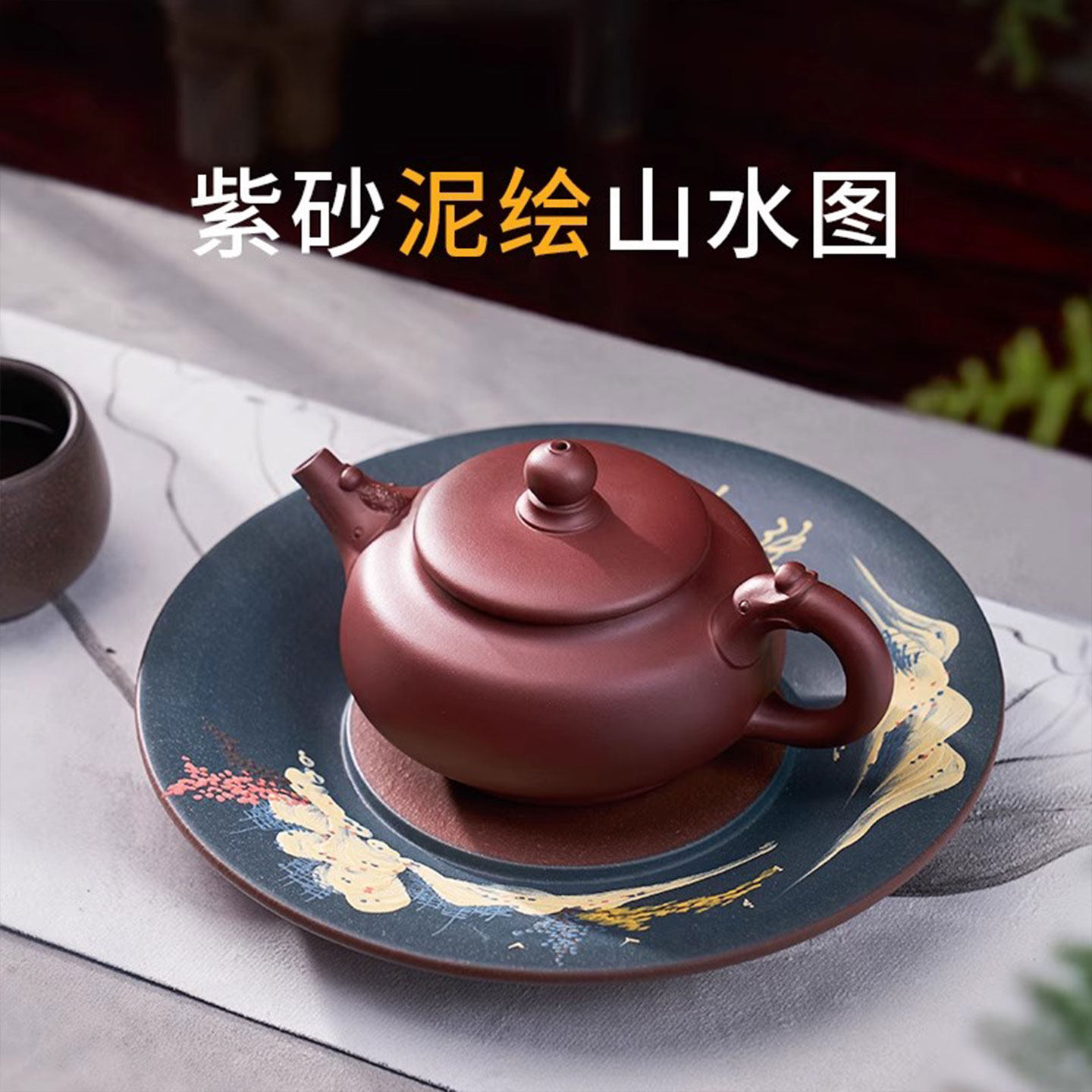 📚 汉唐手工刻绘紫砂壶承干泡台泥绘山水茶承壶承盘储水排水礼盒包装