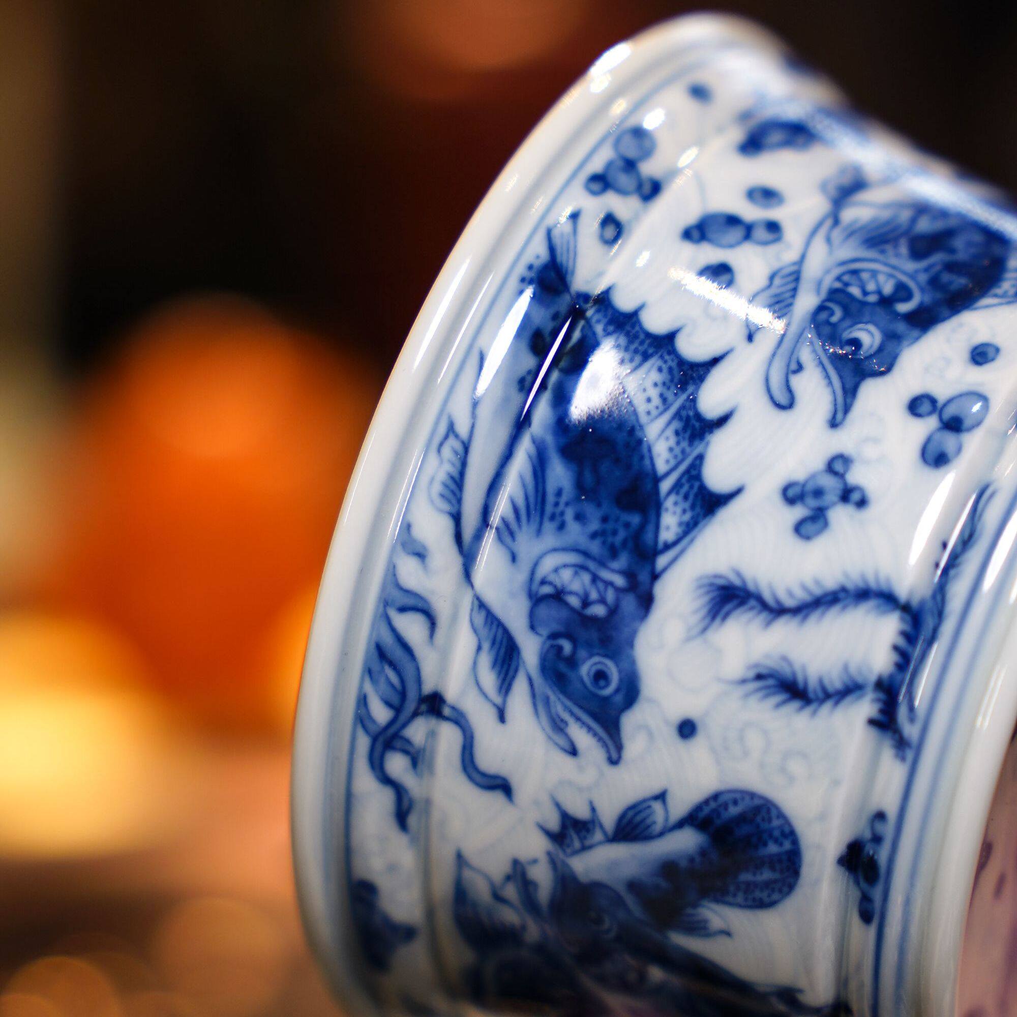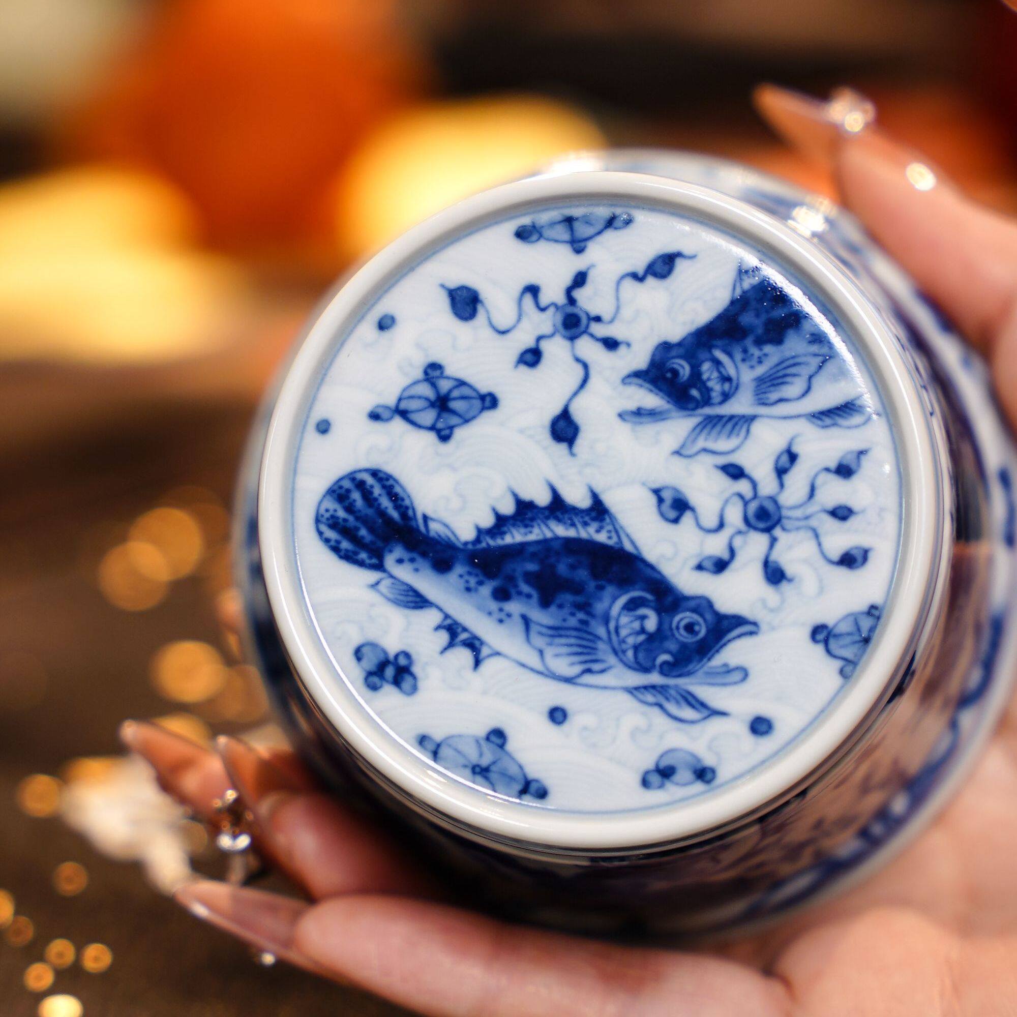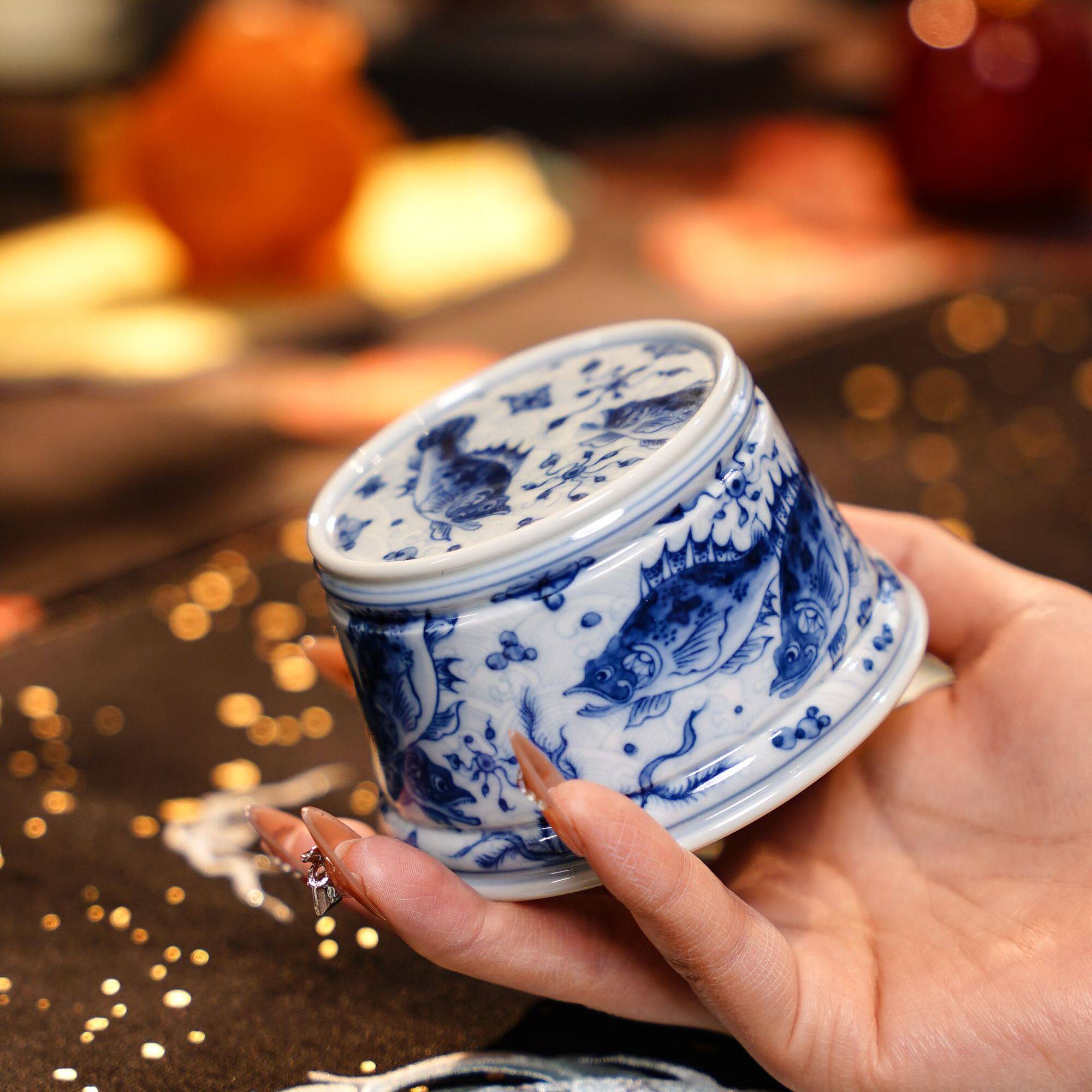 📚 望月怀古 鱼藻盖置 陶瓷主人杯手绘全手工望月怀古茶杯 WYHG006