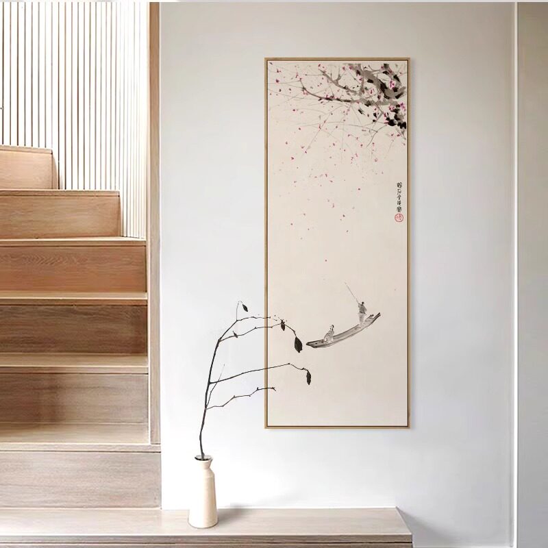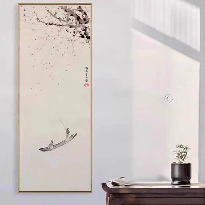📚 傅抱石《云水禅心》新中式山水墨客厅玄关竖版装饰画画茶室禅意挂