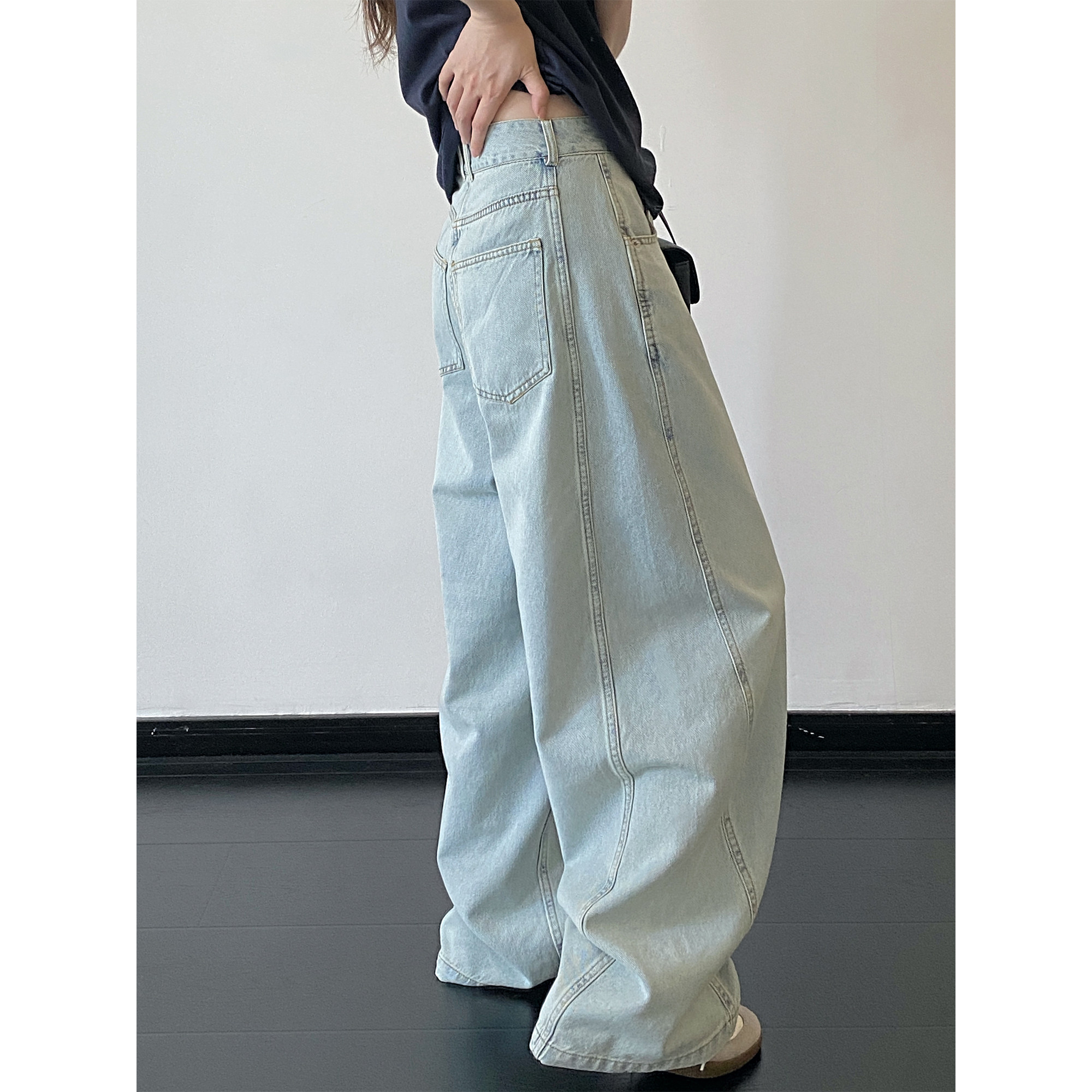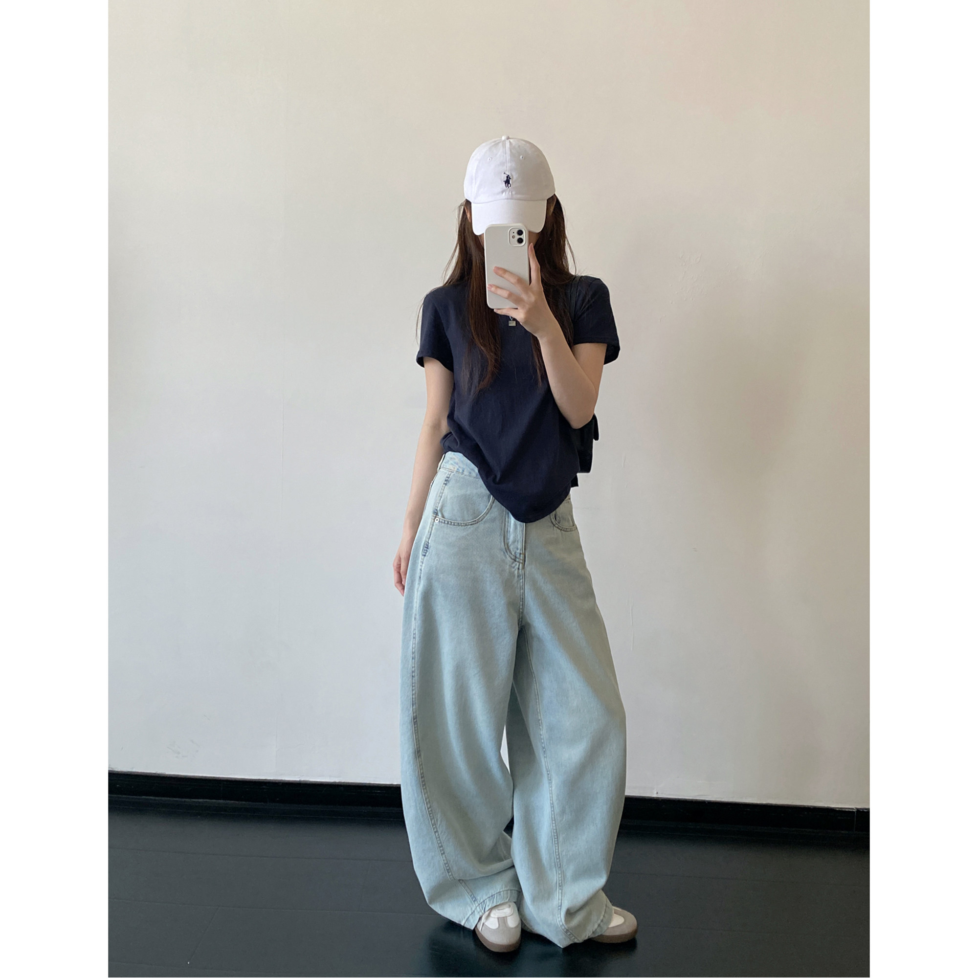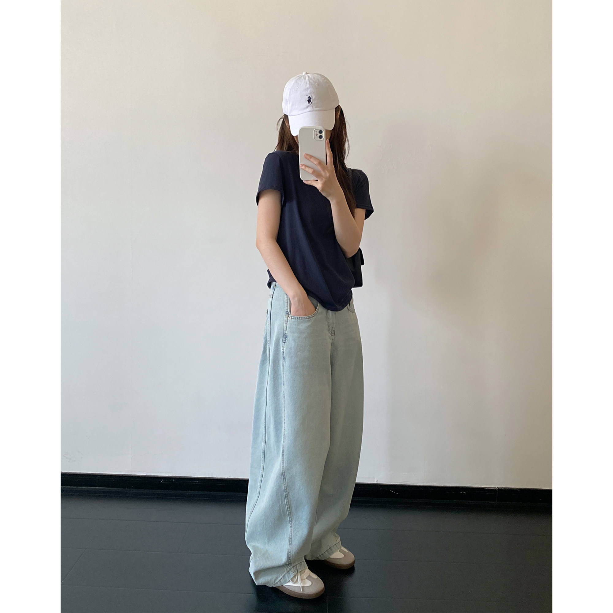 📚 sun柚 '海盐气泡水'令人心旷神怡的水洗蓝立体裁片牛仔裤长裤子女