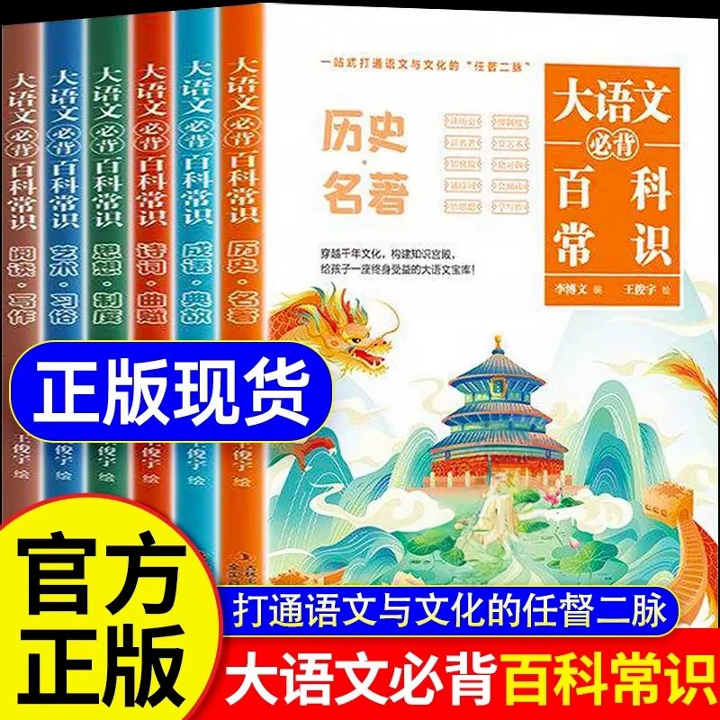 📚 【抖音同款】大语文必背百科常识全套6册正版诗词曲赋成语典故历史名著思想制度艺术习俗书籍知识百科青少年课内外读物雪峰作推荐