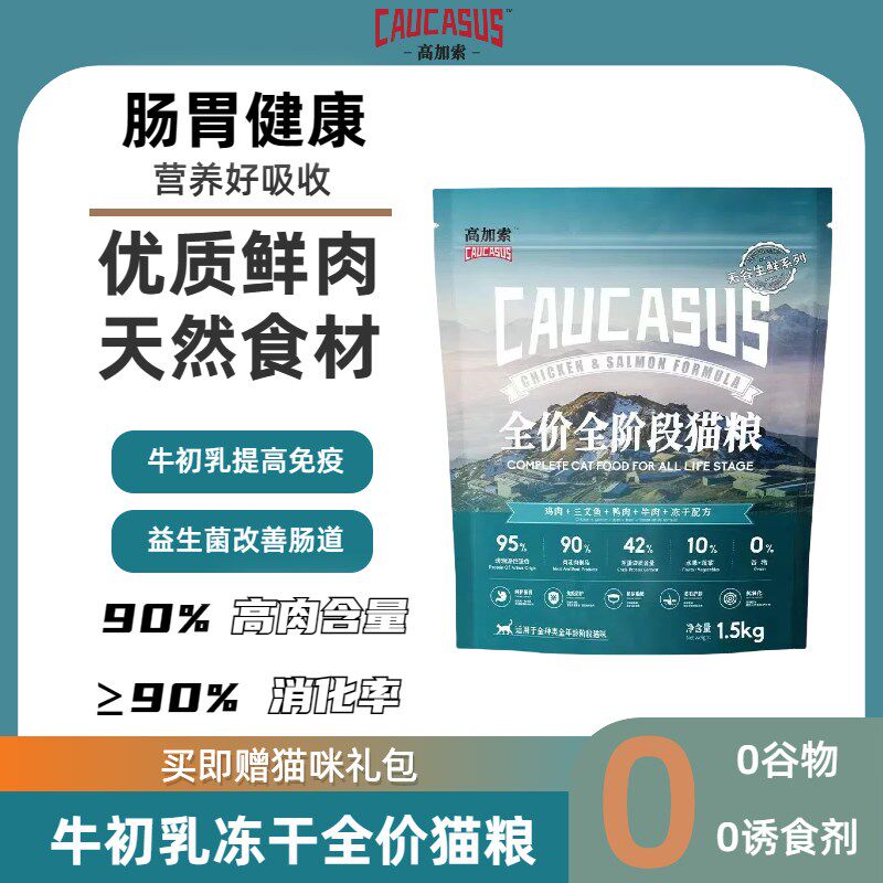 📚 高加索猫粮牛初乳无谷鸡天然纯鲜肉粮高蛋白冻干全价猫粮增强免疫