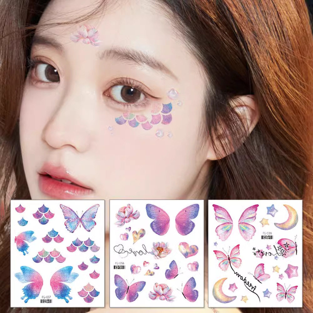 📚 儿童纹身贴闪粉公园彩绘脸防水持久妆容表演额头贴纸古风眉心无毒