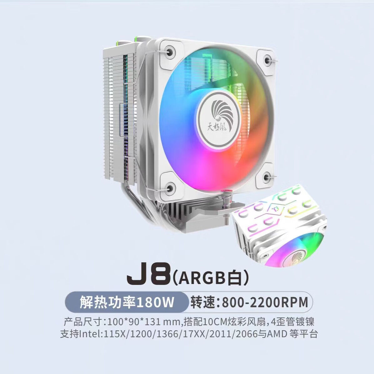 📚 天极风J8四热管风冷CPU散热器ARGB 130MM 10CM风扇ARGB神光同步