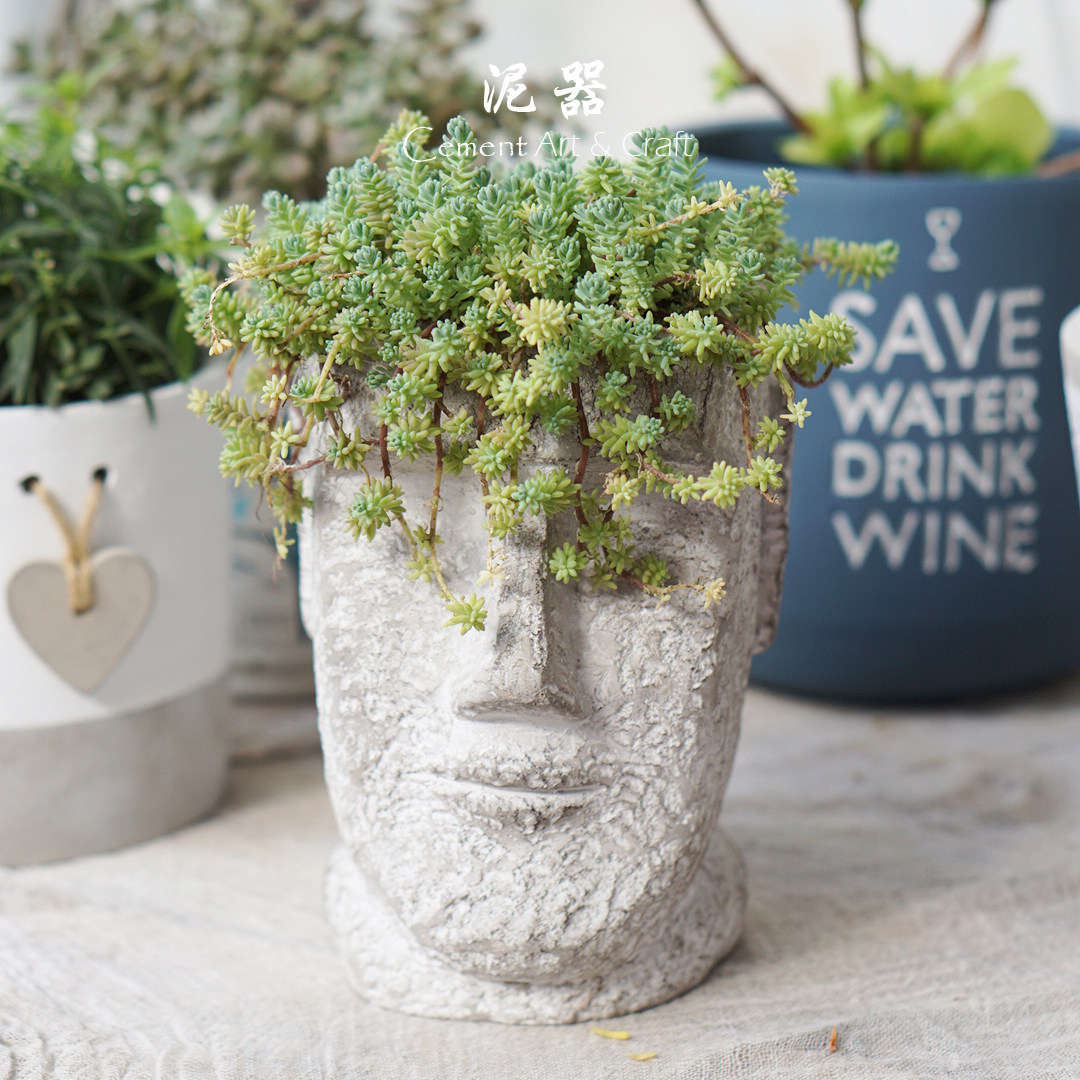 📚 【泥器】ins北欧艺术创意人头雕像勇士复古花插水泥花盆家居摆件