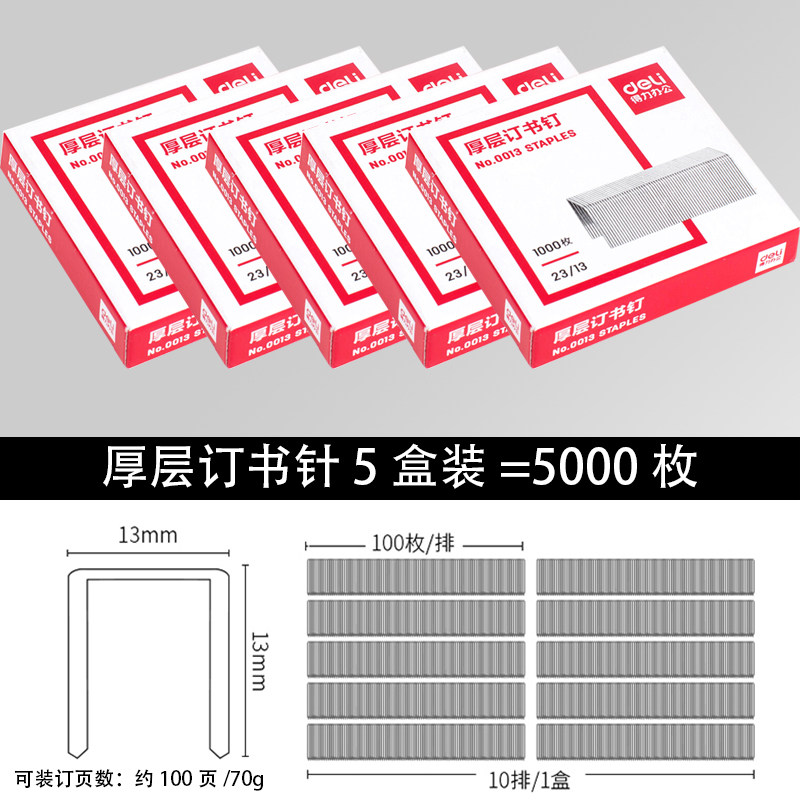 📚 得力0013订书钉2313订书针23/13订100页大号重型厚层订书机订书钉