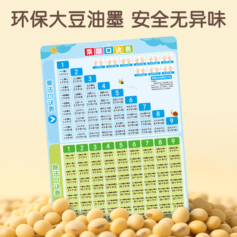 📚 小学生九九乘法口诀表挂图儿童一二年级数学天天练99乘除法表墙贴