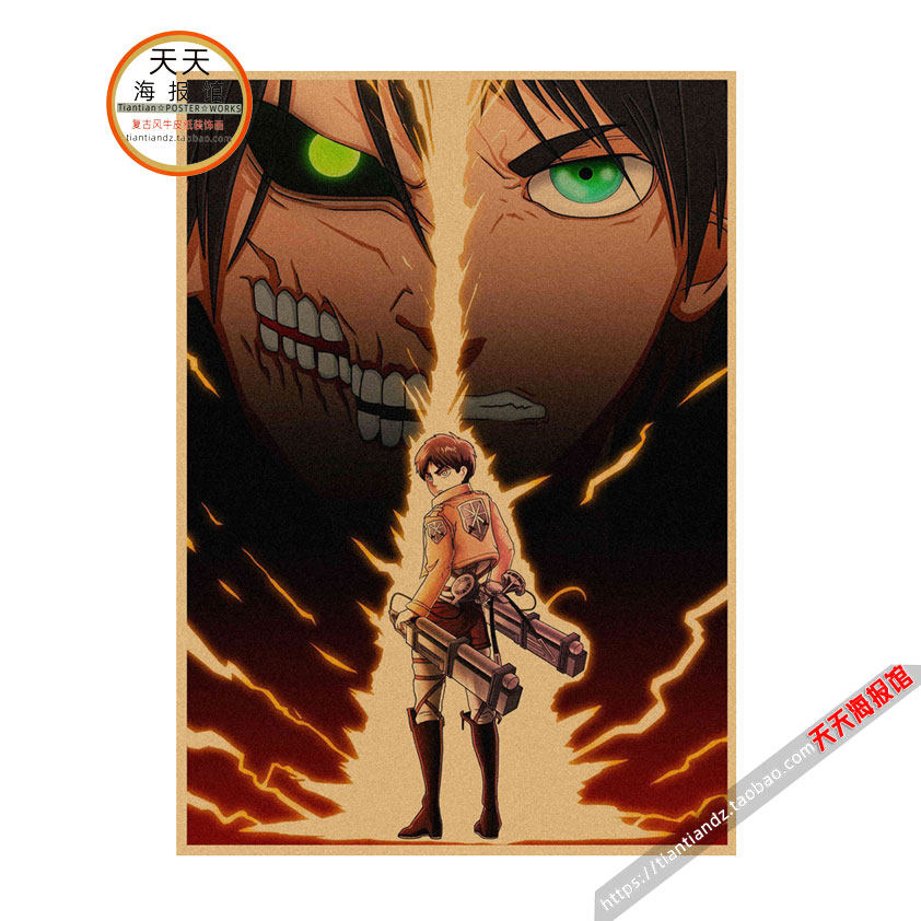 📚 动漫海报 进击的巨人 复古牛皮纸酒吧咖啡厅装饰墙画壁画 247