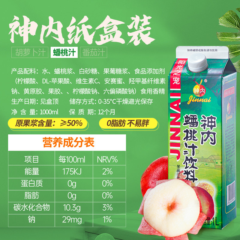 📚 神内果蔬汁蟠桃汁代餐轻断食果汁饮料绿色食品新疆特产1L*6盒装
