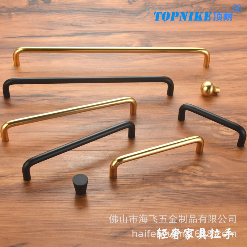 📚 顶耐轻奢衣柜门把手鞋柜橱柜拉手抽屉手把金色黑色双弯拉手欧式