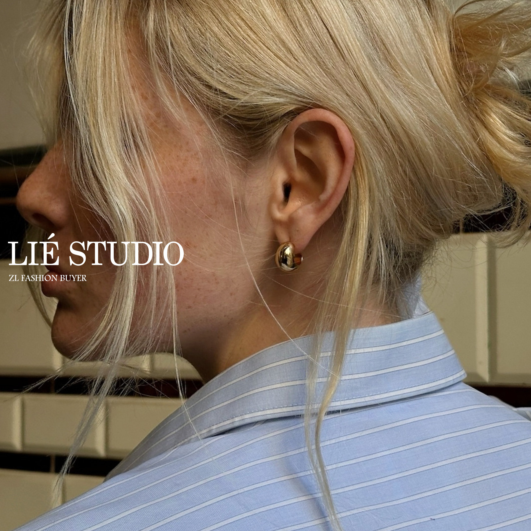 📚 现货Lie Studio丹麦小胖C简约圆环Hoops高级小众开口耳环官方授权