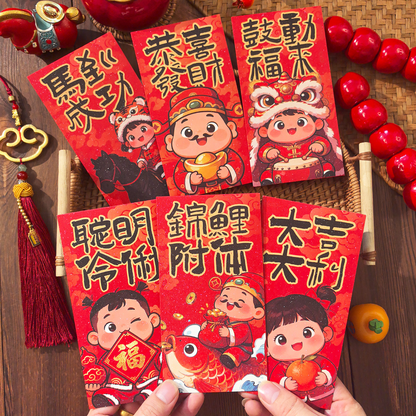 📚 锦鲤附体财神红包袋2026马年红色壳长款个性创意卡通用压岁利是封