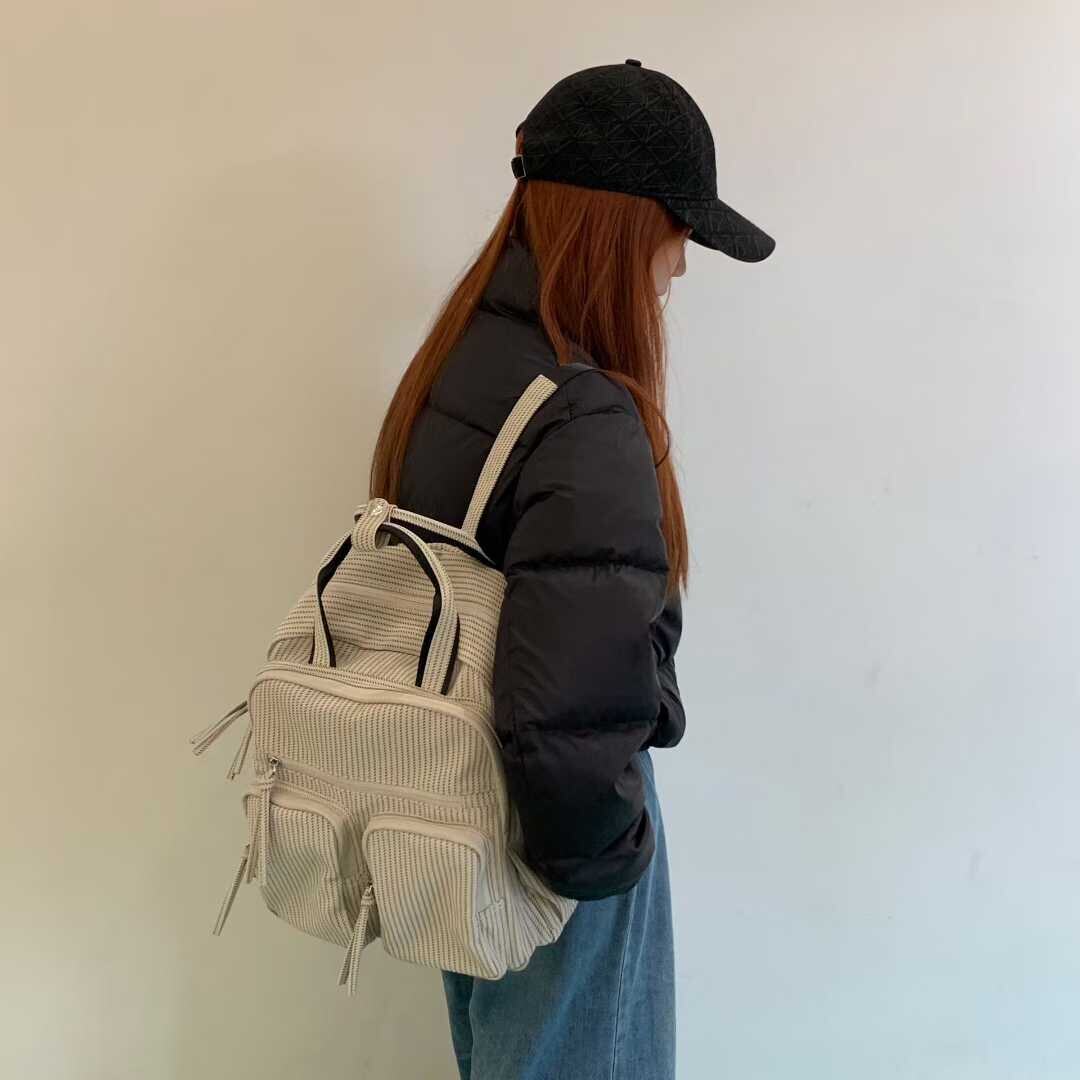 📚 多口袋夹层小众双肩包PU软皮休闲大容量双肩包包百搭英伦双肩背包