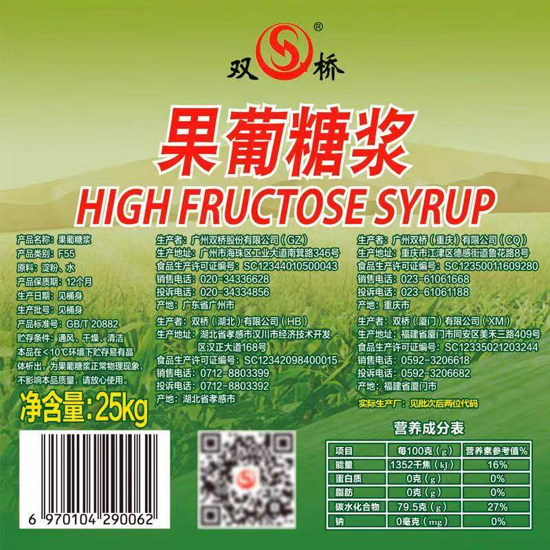 📚 双桥F60果糖碳酸饮料商用手打柠檬茶奶茶25kgF55果葡糖浆广东包邮
