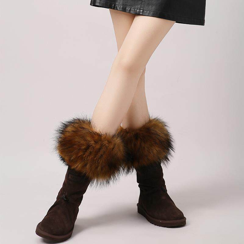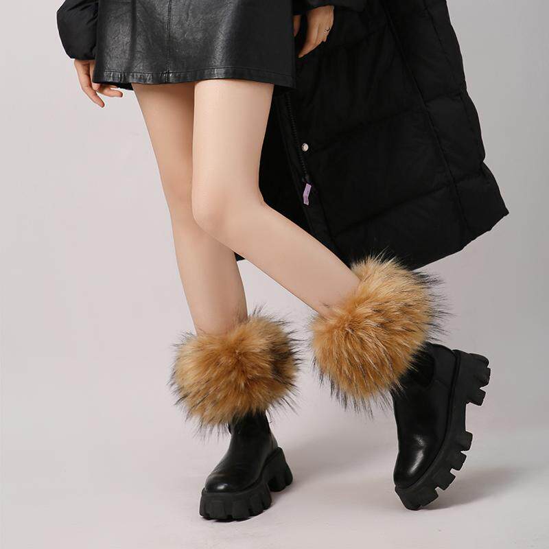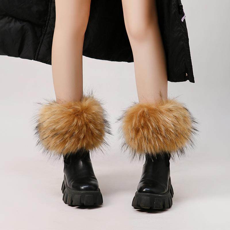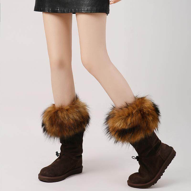 📚 仿狐狸毛绒袜套长款靴套秋冬保暖舞台表演狐狸毛皮草高筒护腿套女