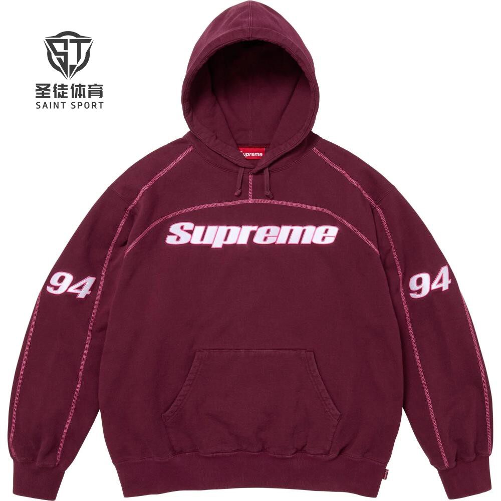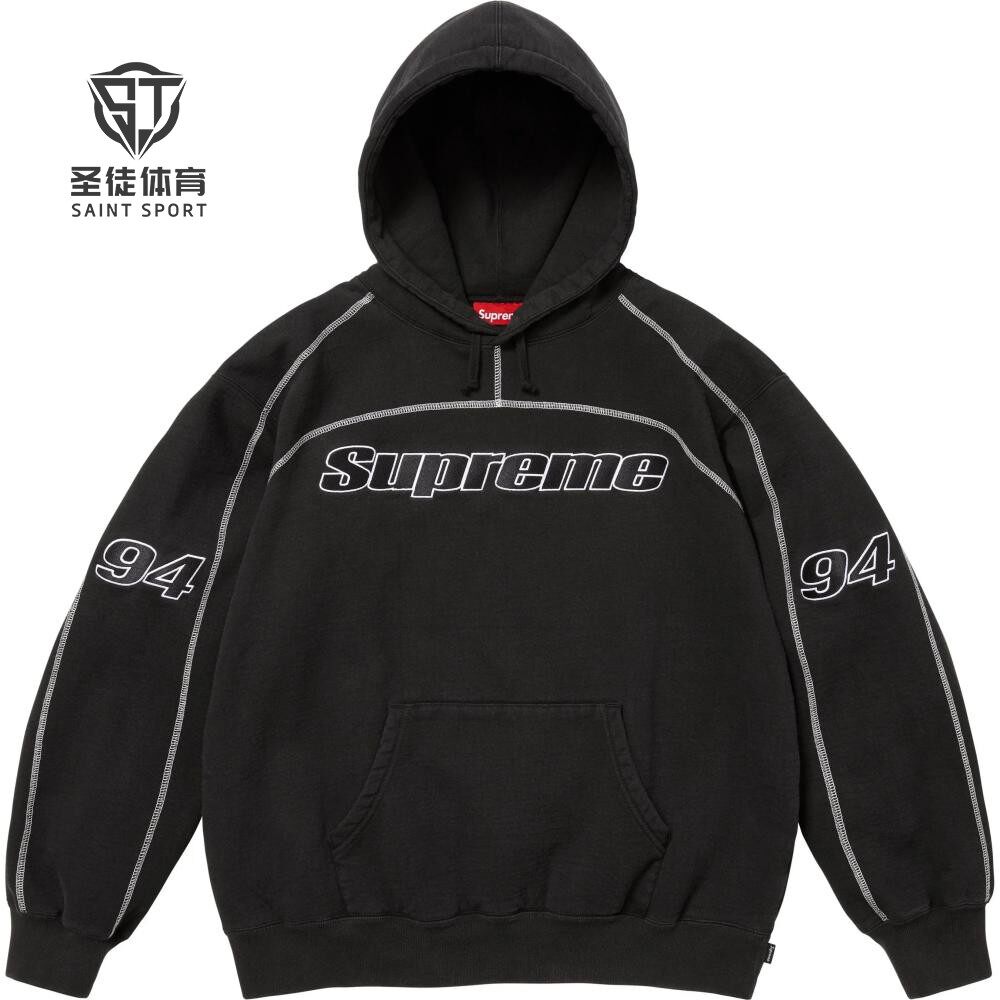 📚 正品 Supreme 25FW Overlock Hooded 刺绣徽标 94 连帽卫衣