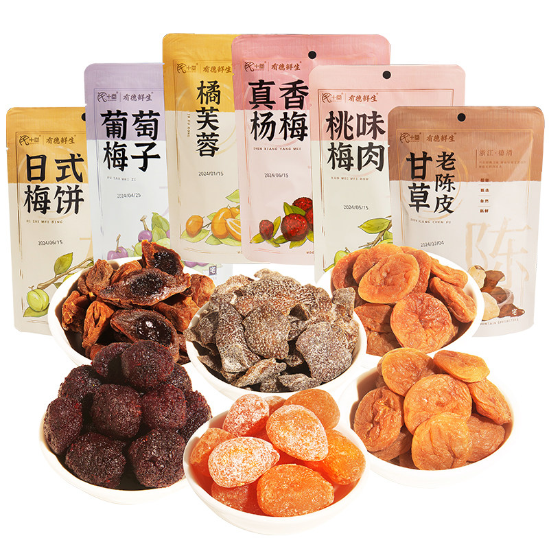 📚 葡萄梅子日式梅饼无核梅饼桃味甘草老陈皮真香杨梅金桔蜜饯大礼包