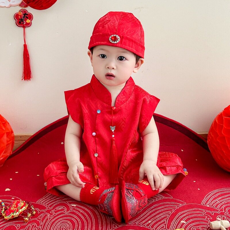 📚 儿童唐装汉服男女宝宝周岁礼服国风中式抓周冠服婴幼童百天生日