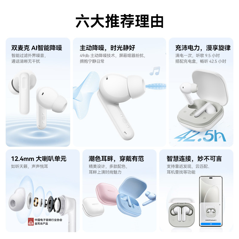 📚 荣耀Earbuds S无线蓝牙耳机入耳式降噪通话运动续航官方正品新款
