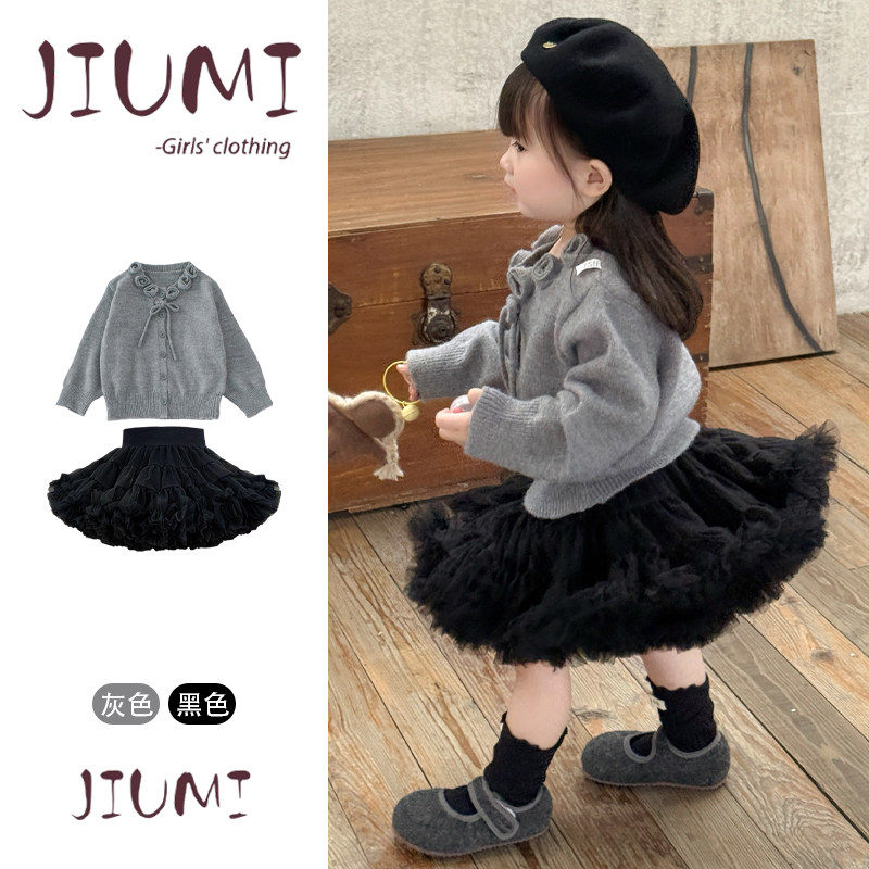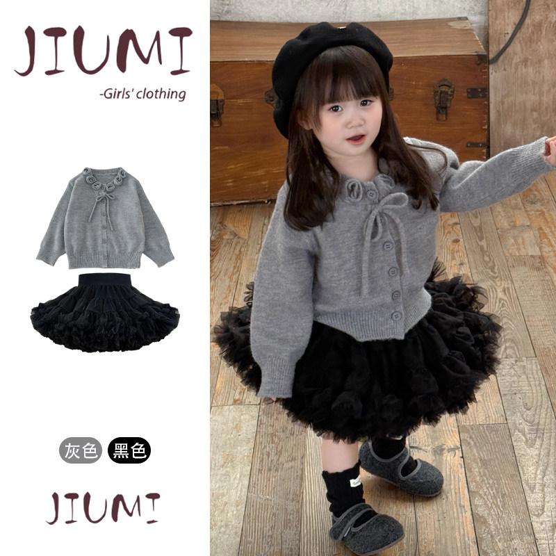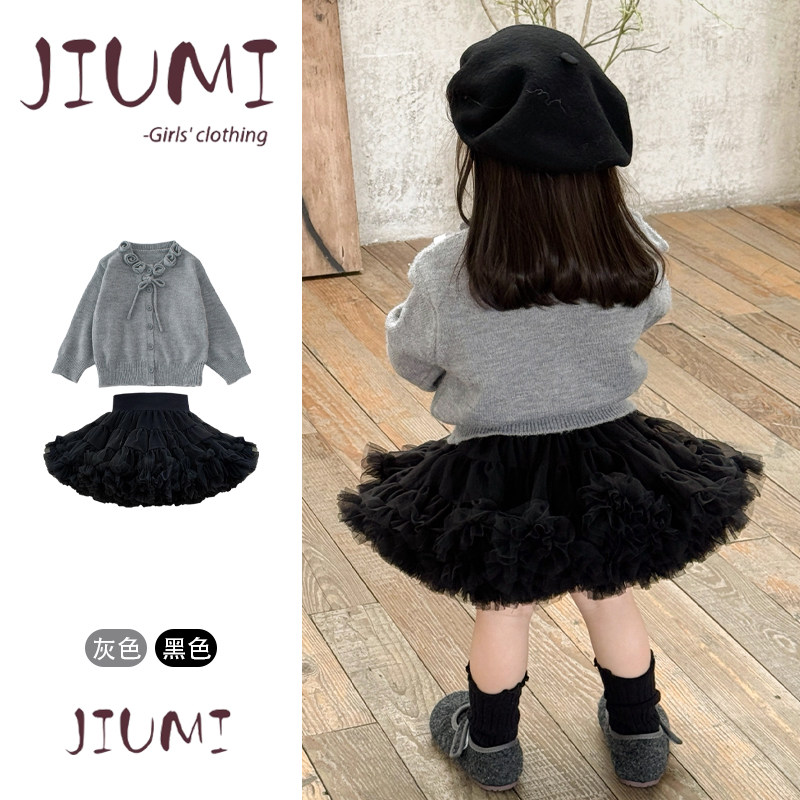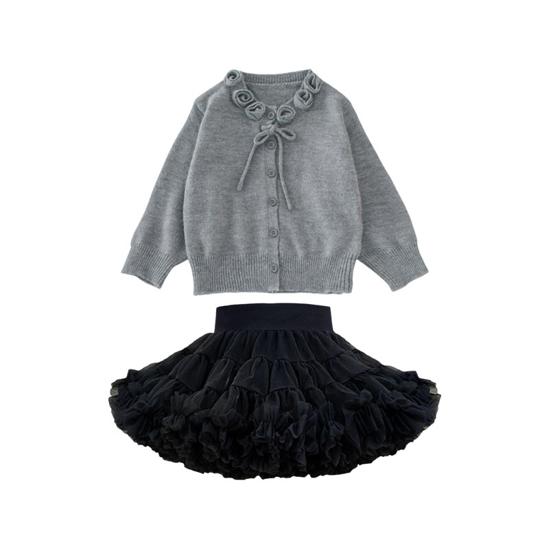 📚 女童春秋韩版甜美可爱凸凸裙套装宝宝玫瑰花毛衣蓬蓬凸凸裙两件套