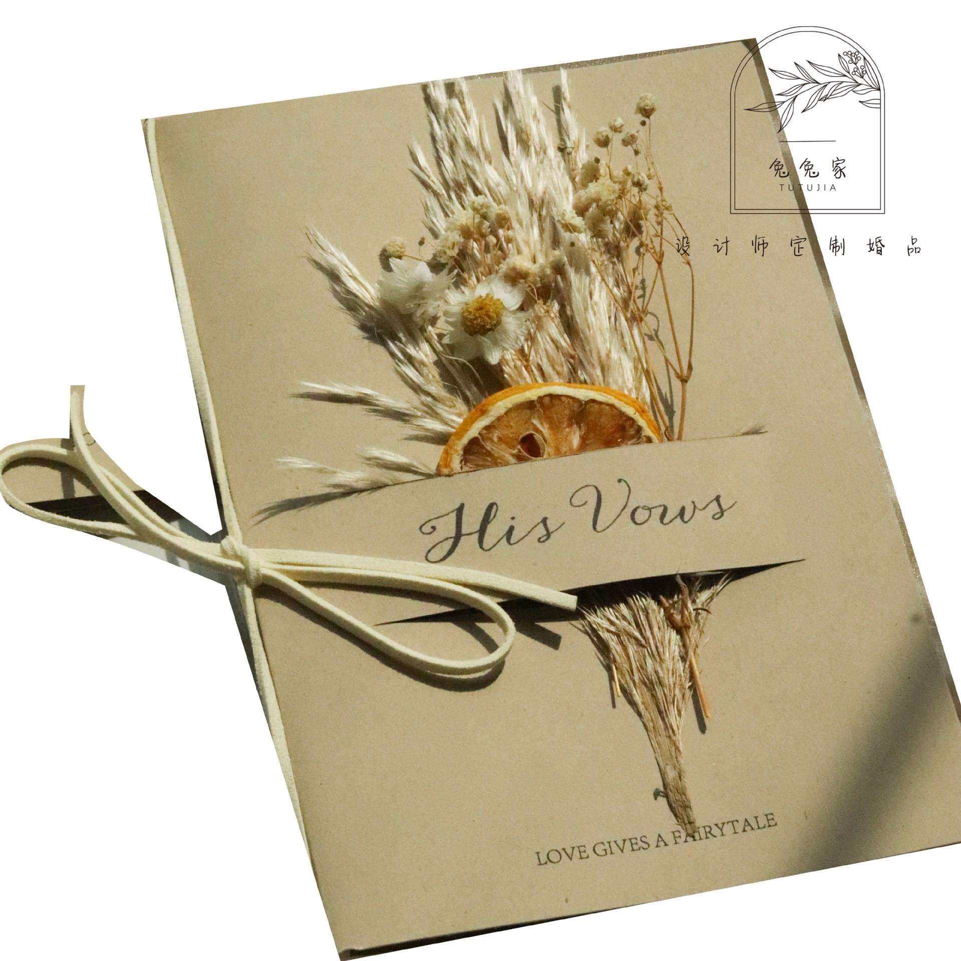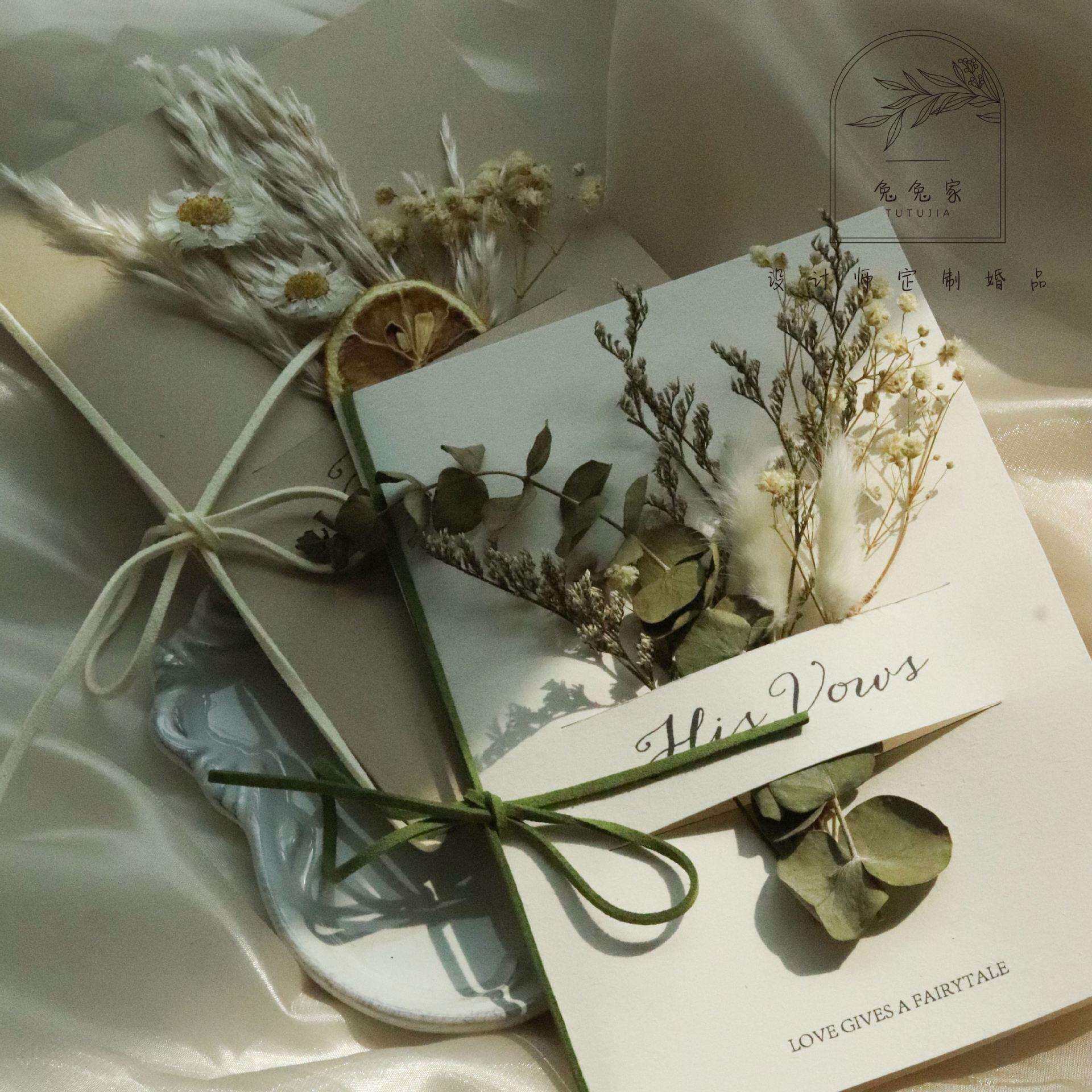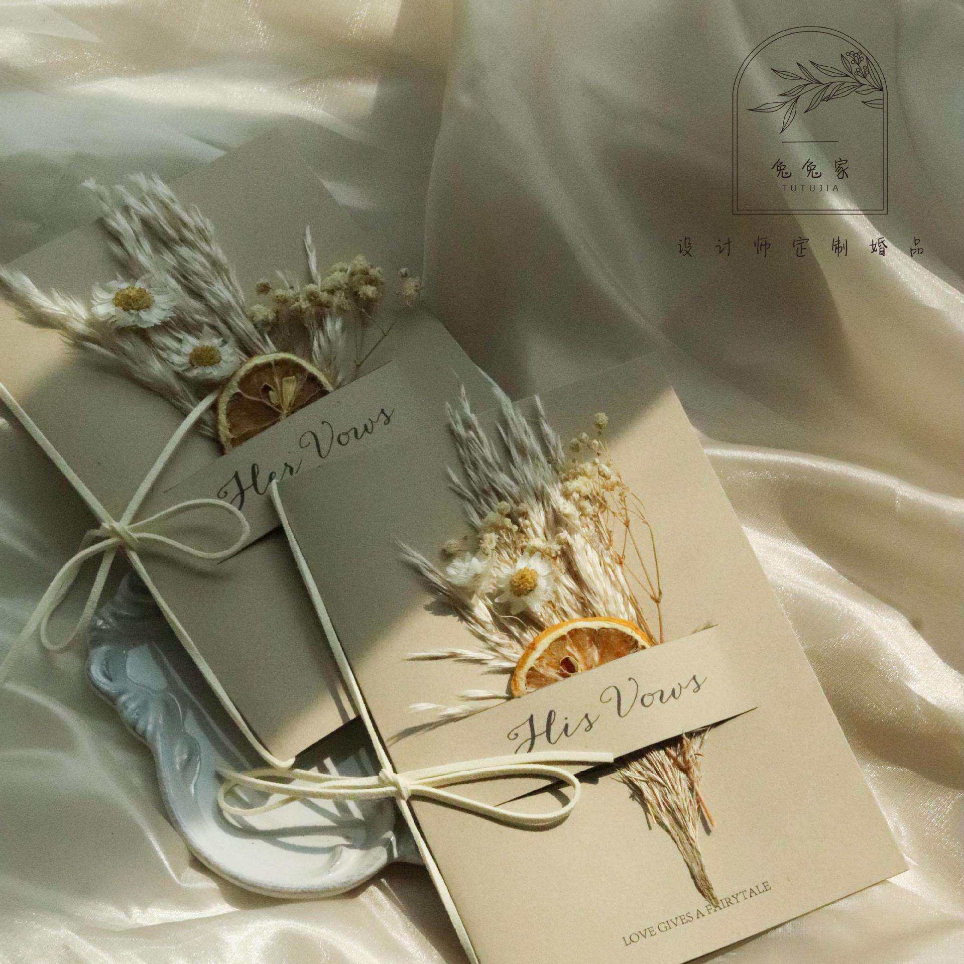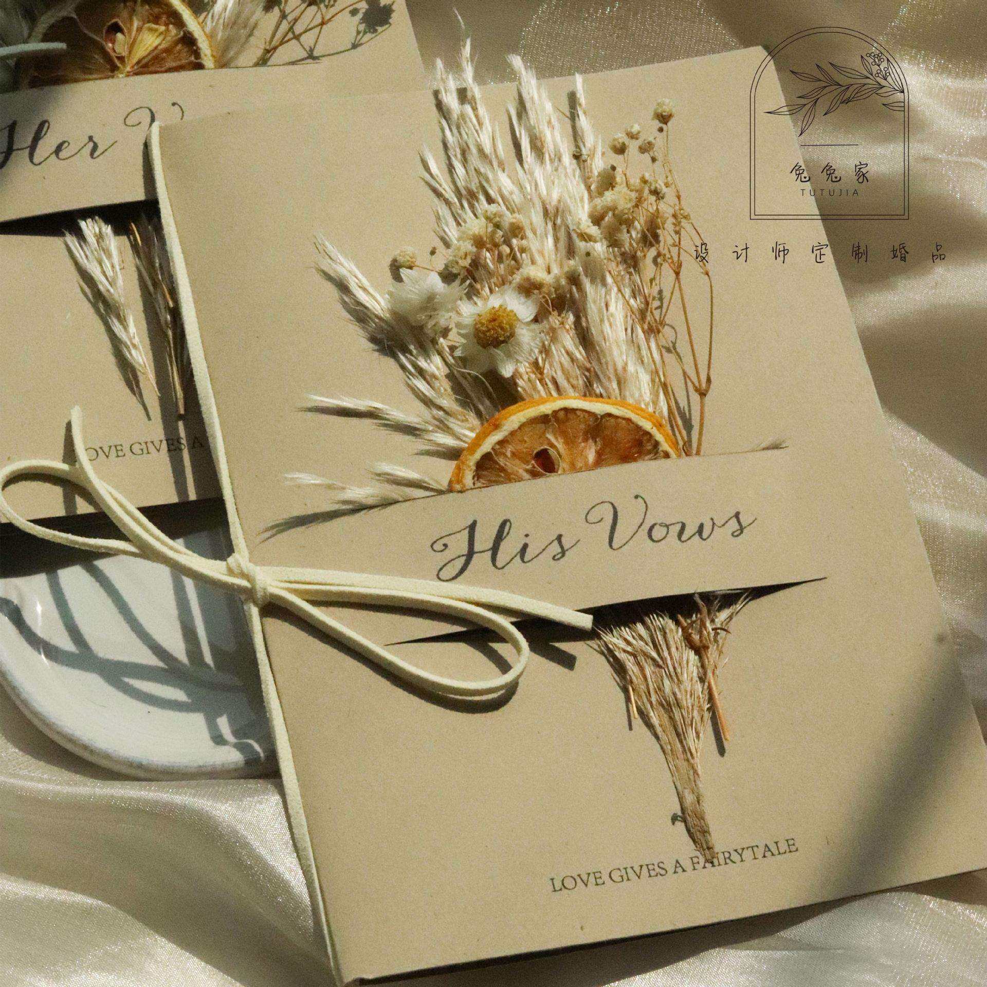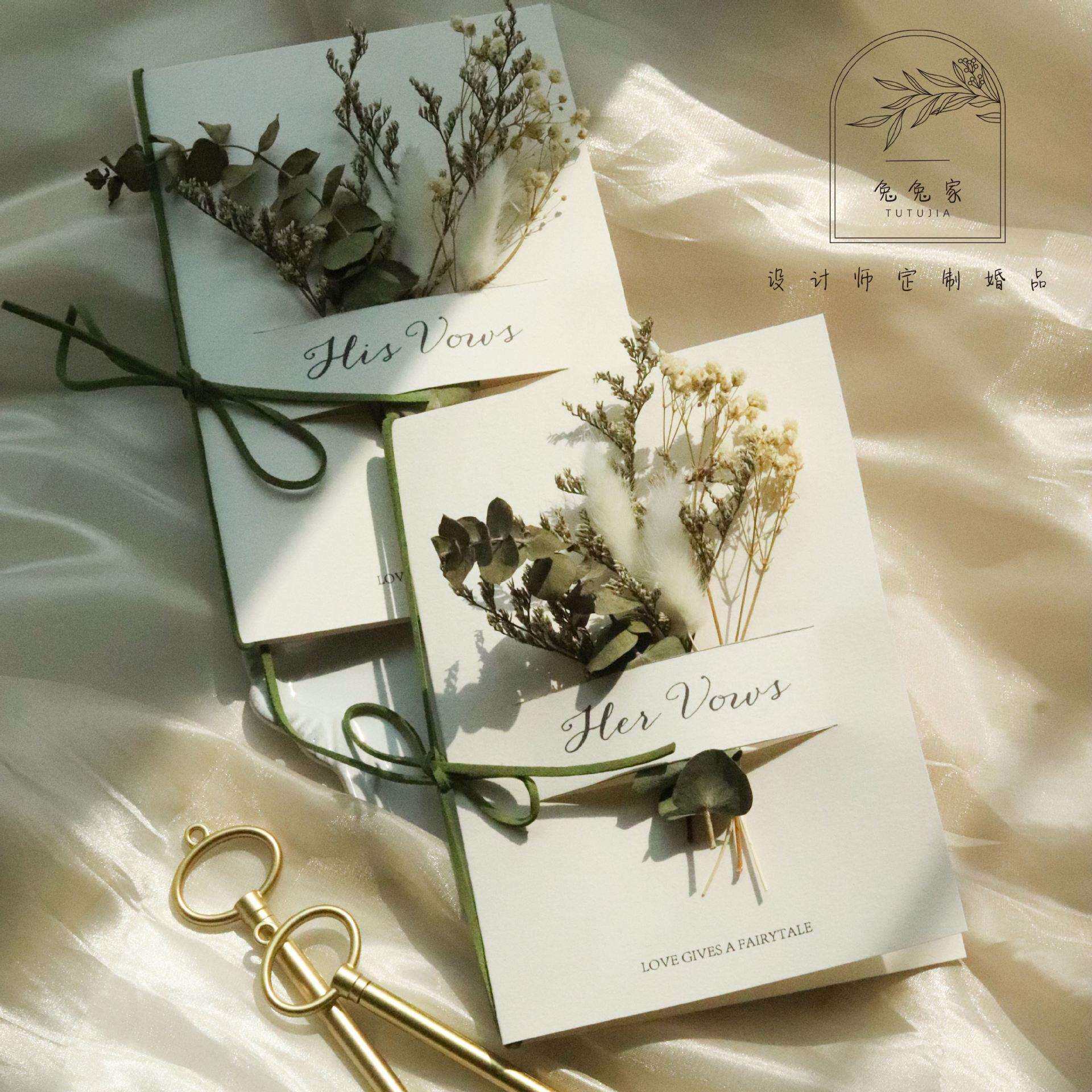📚 森系干花婚礼誓言卡对折式致辞卡结婚宣言卡简约复古风小清新