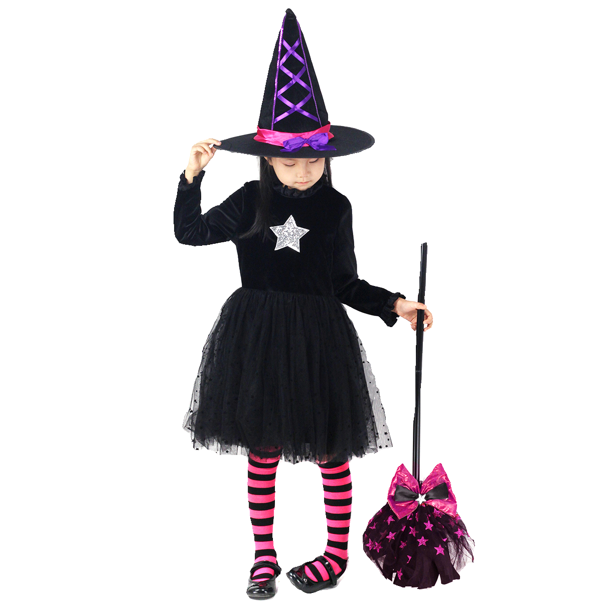 💃"女童万圣节魔法礼服裙,天鹅绒连衣裙,让巫婆变身时尚达人!"