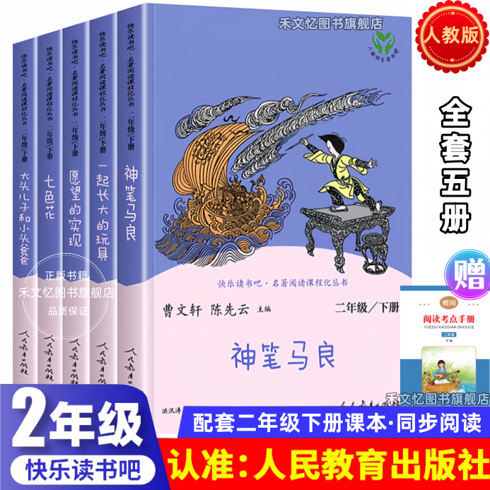 📚 快乐读书吧二年级下册全套5册人教版神笔马良七色花一起长大的玩具愿望的实现大头儿子和小头爸爸正版课外书人民教育出版社非注音2