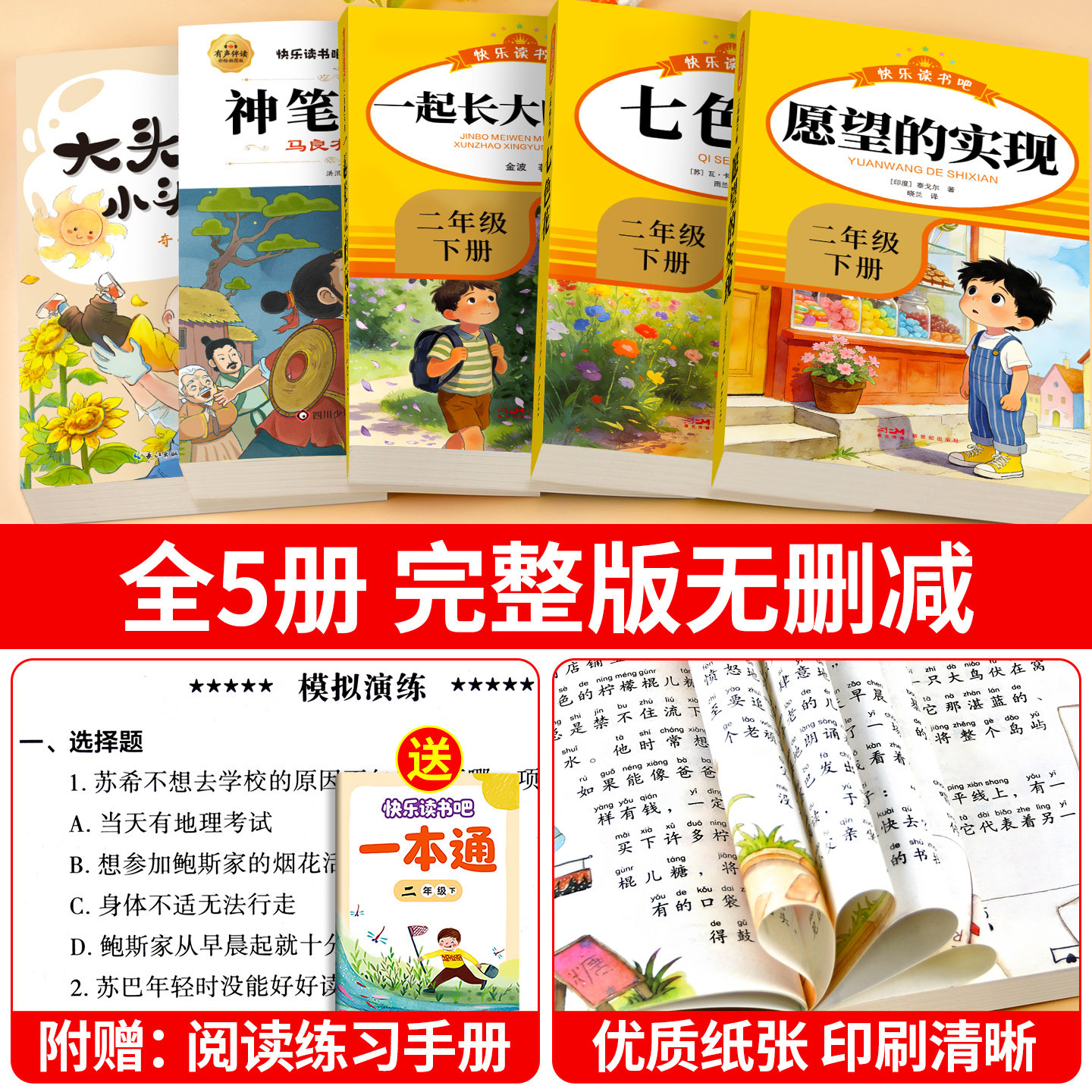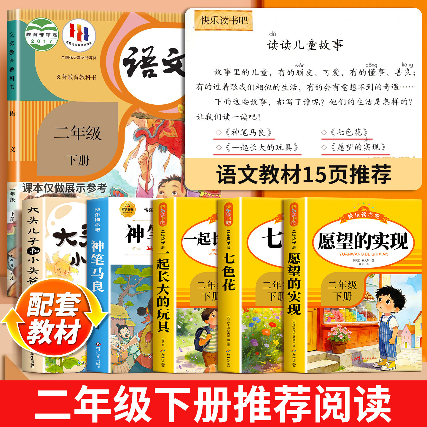 📚 全套5册 愿望的实现二年级下册必读正版的课外书注音版老师推荐神笔马良七色花快乐读书吧2二下阅读书籍人教版书目一起长大的玩具