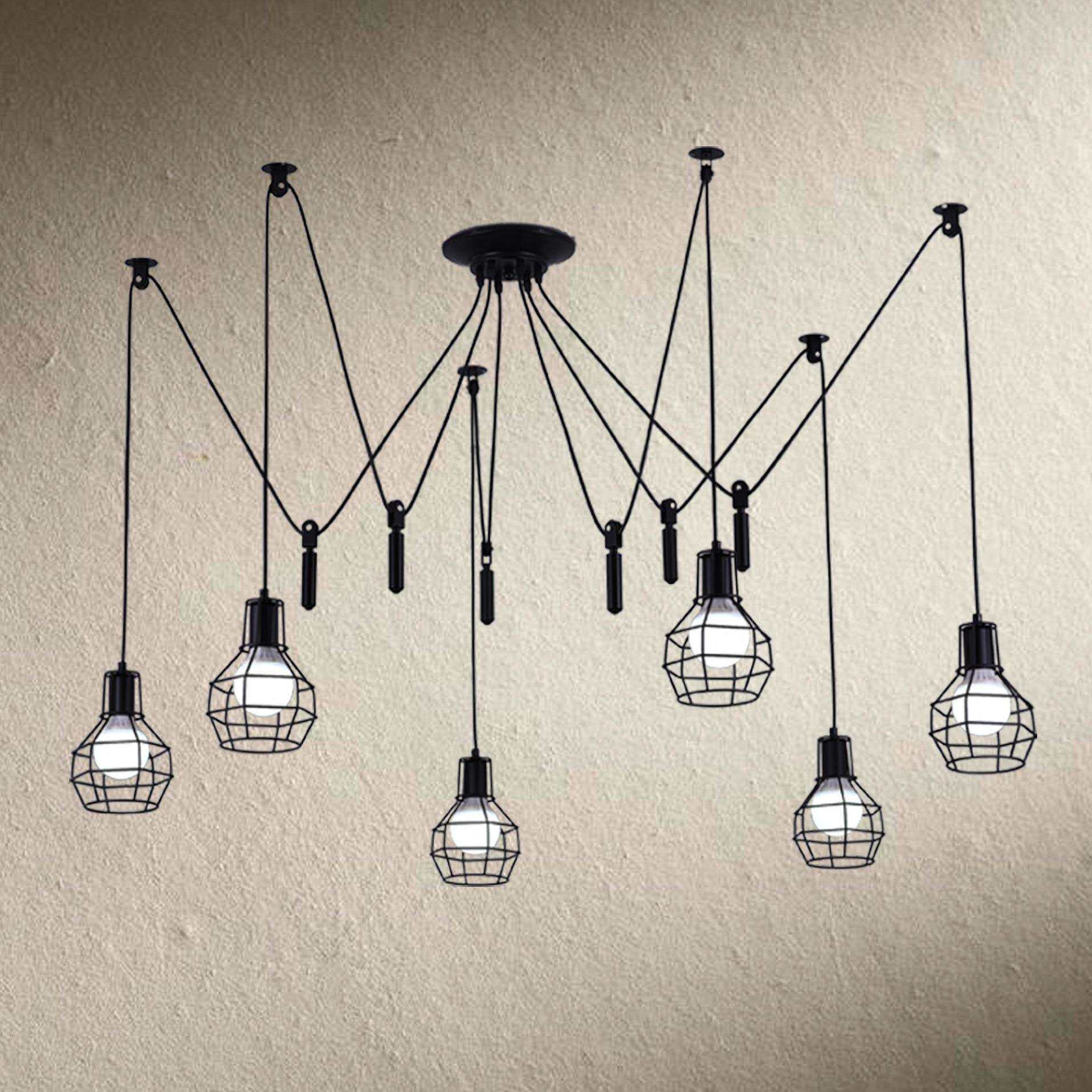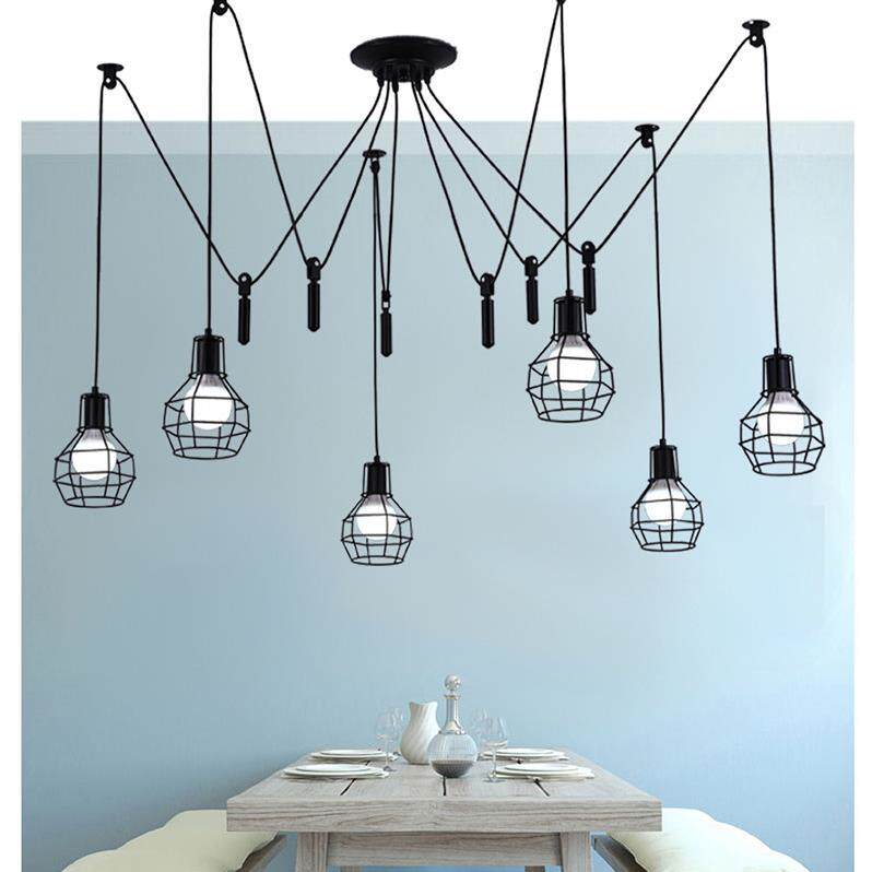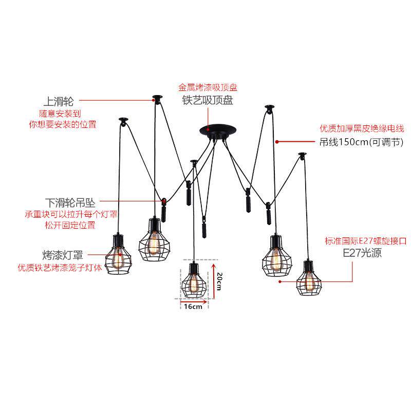 📚 北欧后现代天女散花吊灯服装店创意滑轮升降复古工业风铁笼子灯饰